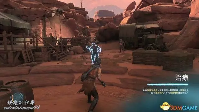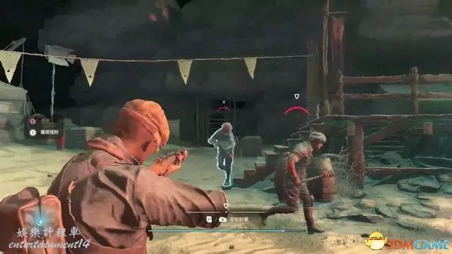 沿路前進,途經敵人營地時觸發戰鬥教學。