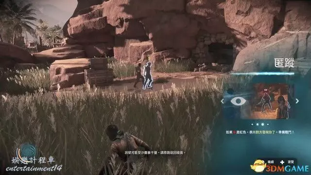 繼續前進,進入草叢後觸發潛行教學。