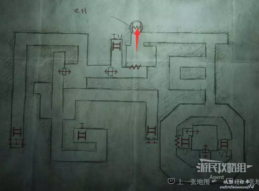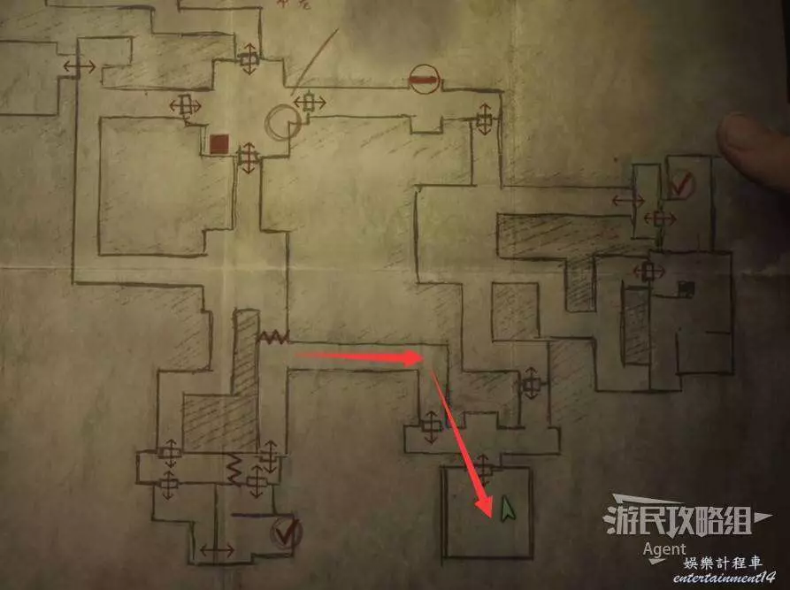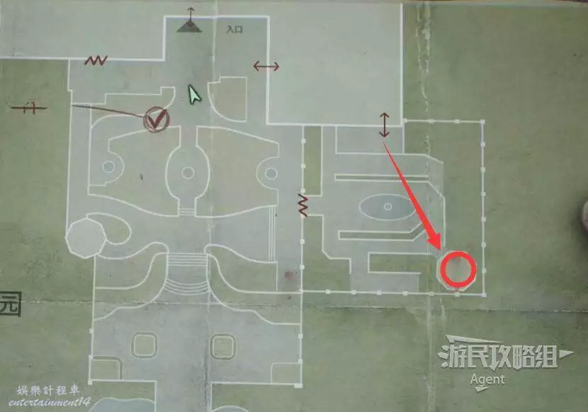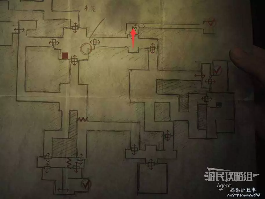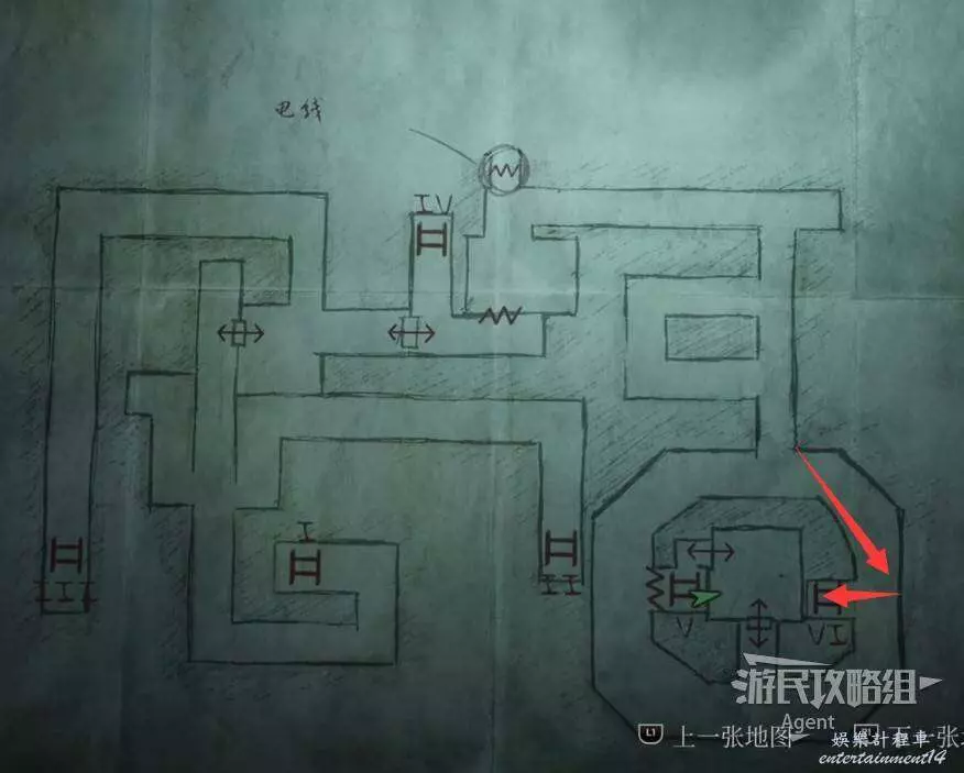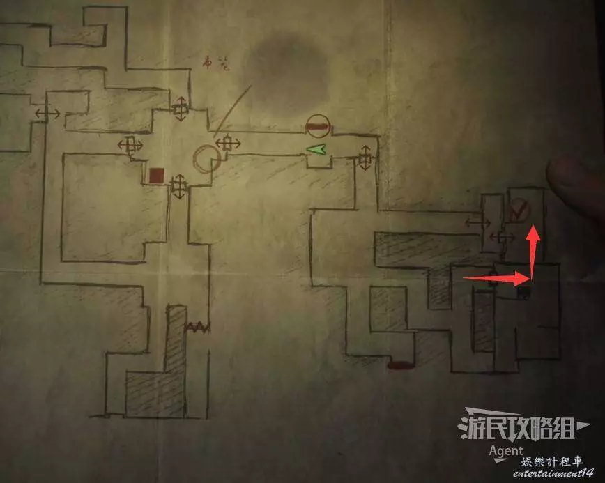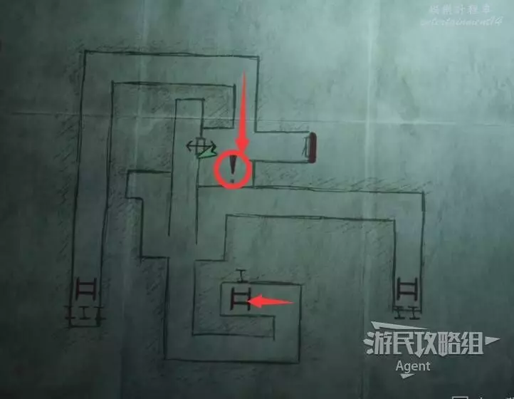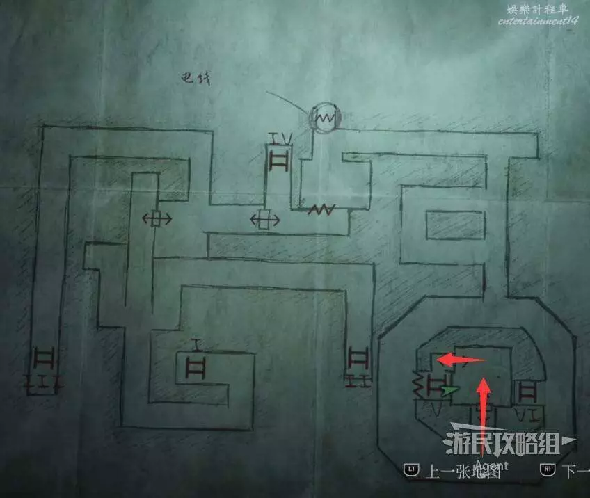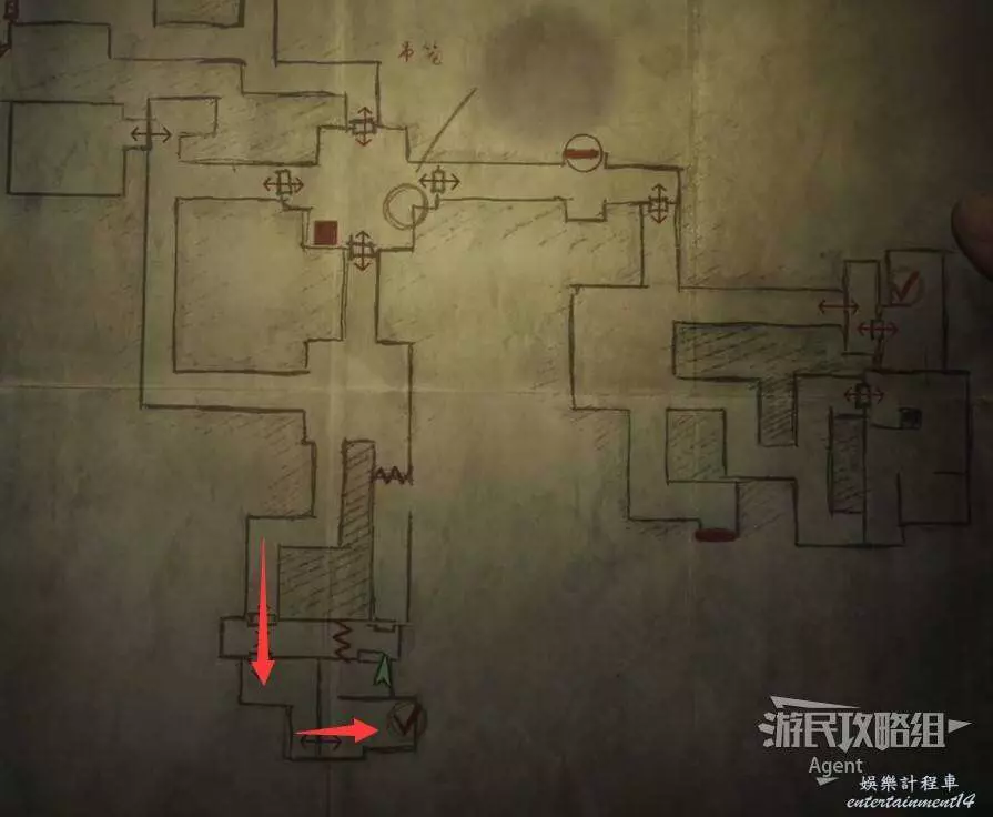 走出食堂後直接進面前的房間(武器庫)裡有存檔點和步槍子彈,牆上拿到【監獄地圖】。