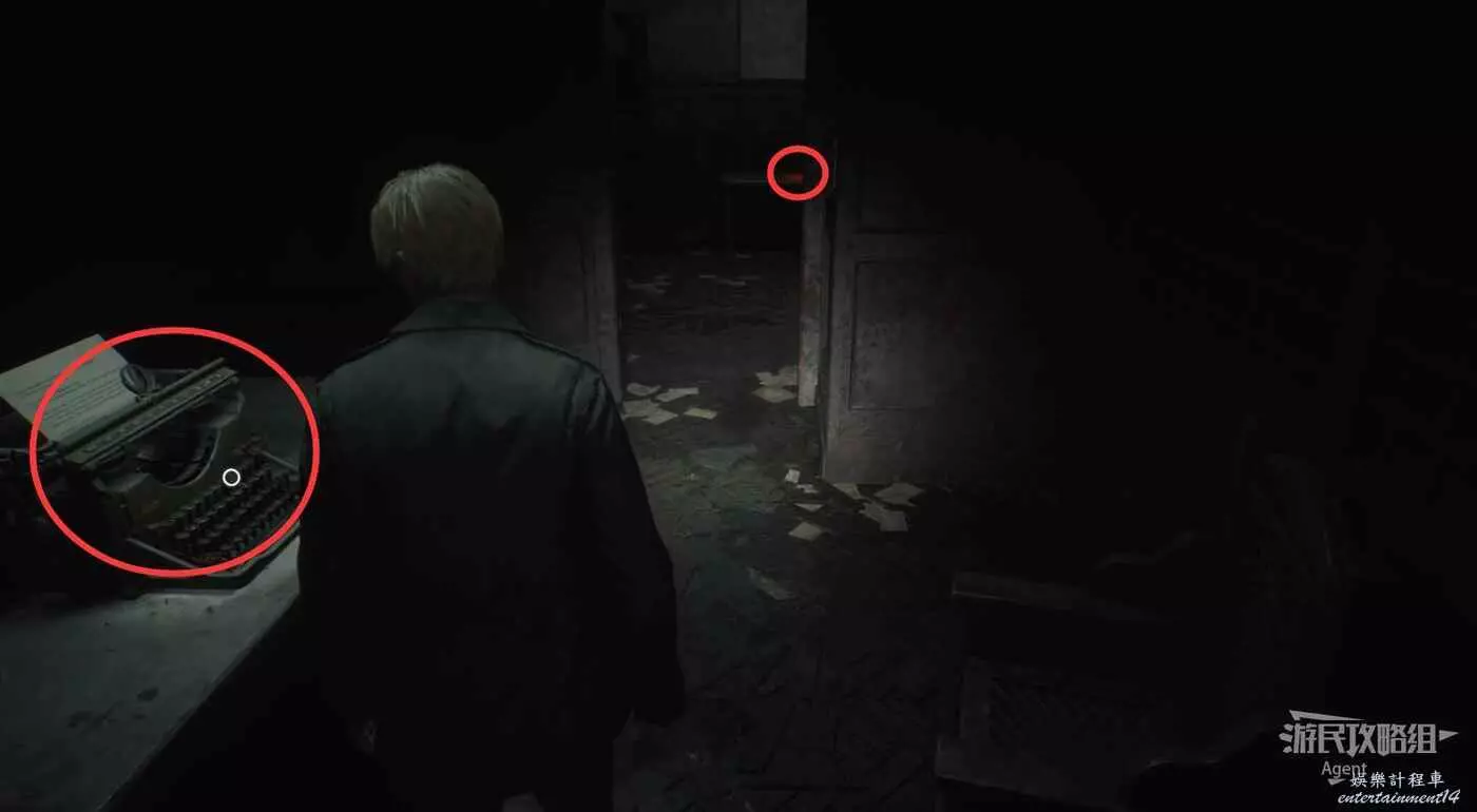 繼續上樓來到三樓典獄長辦公室,隔壁房間有存檔點,打字機隨便按四下得到【輕砝碼】。