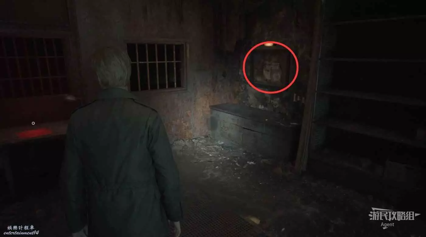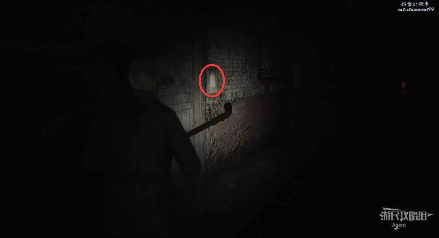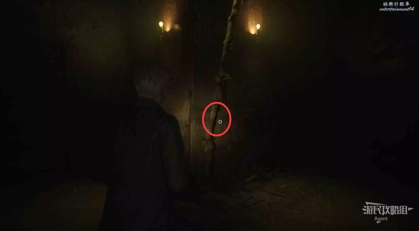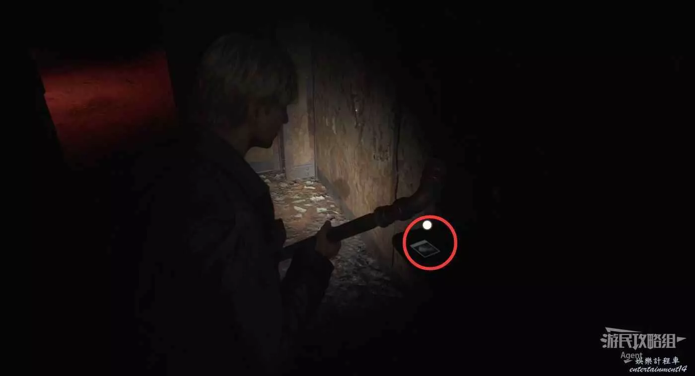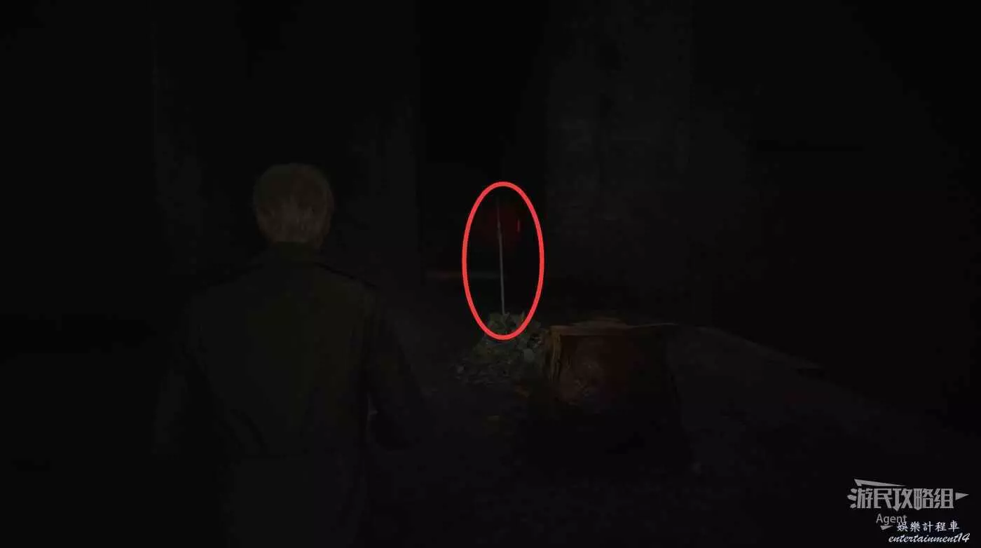 最後往南走,在下圖位置的牆洞裡拿到【打火機火芯】。