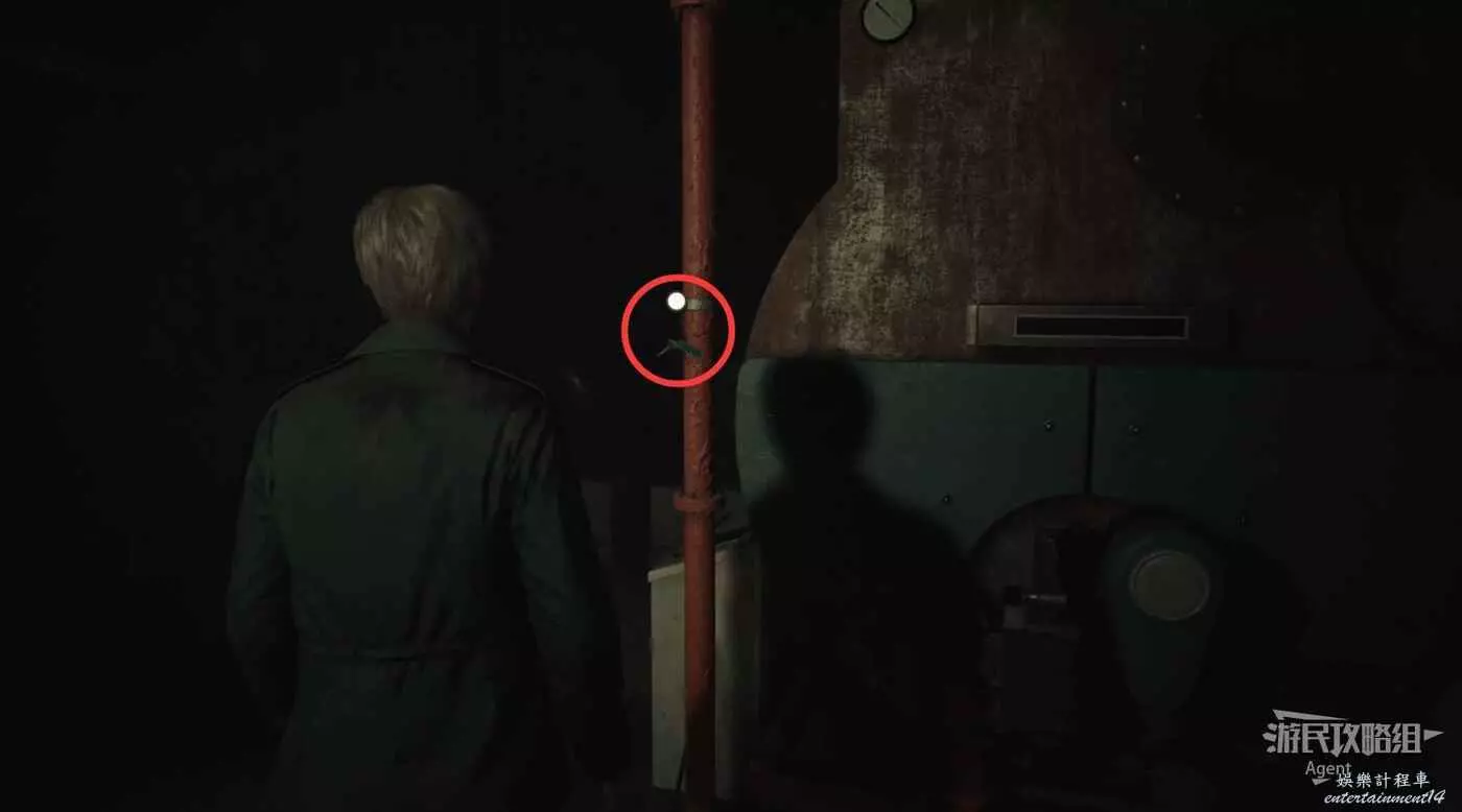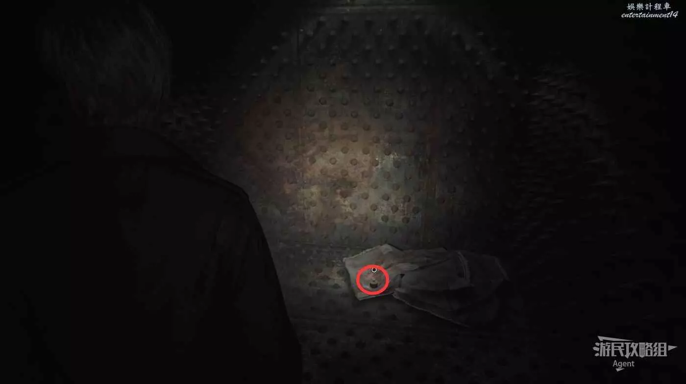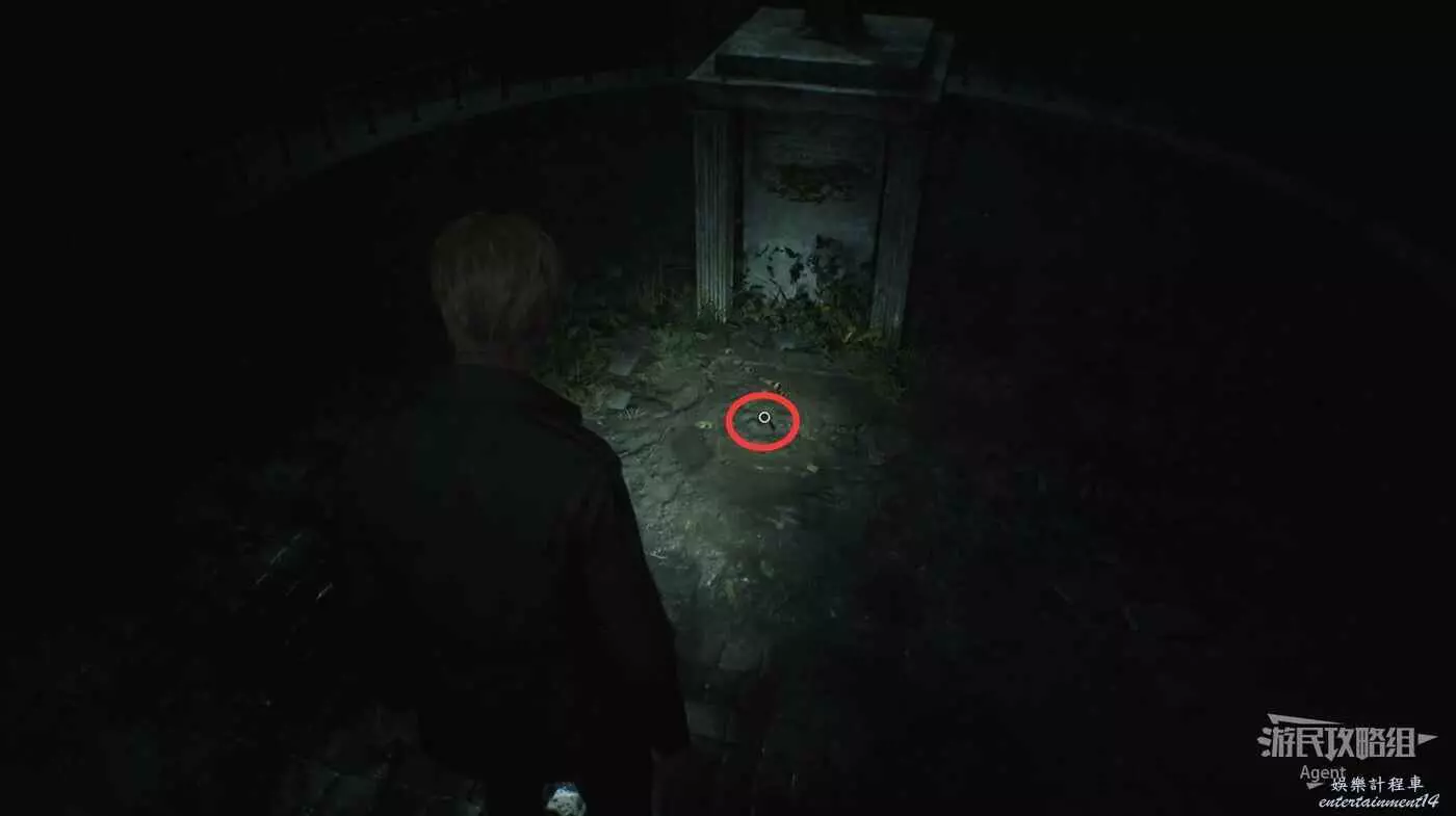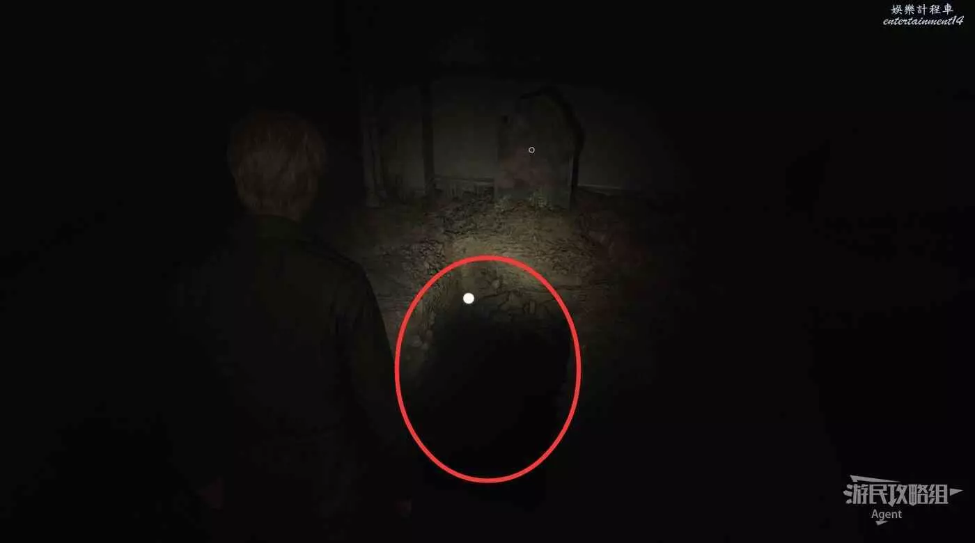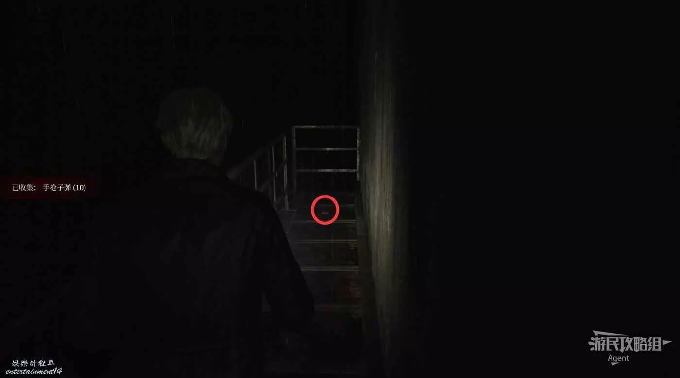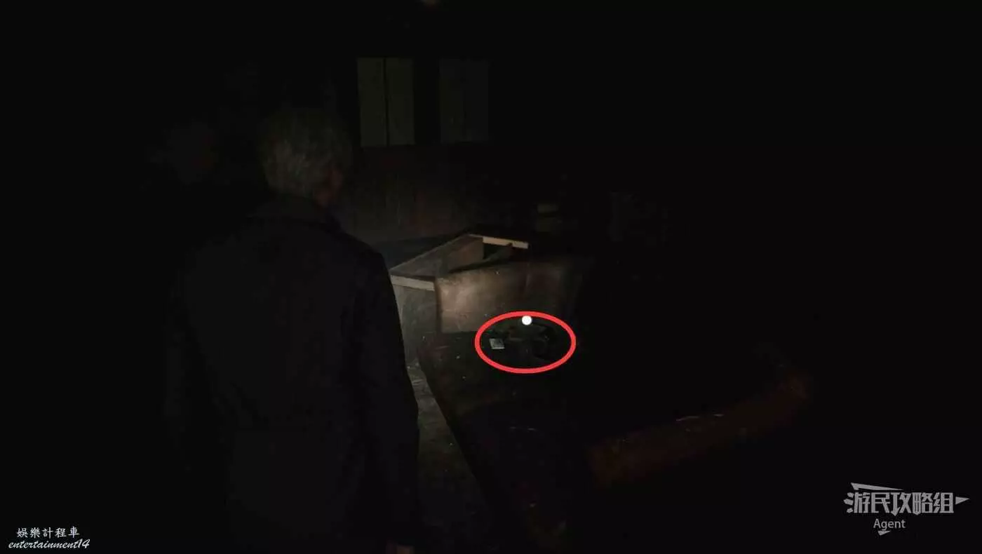 最後往南走,在下圖位置的牆洞裡拿到【打火機火芯】。