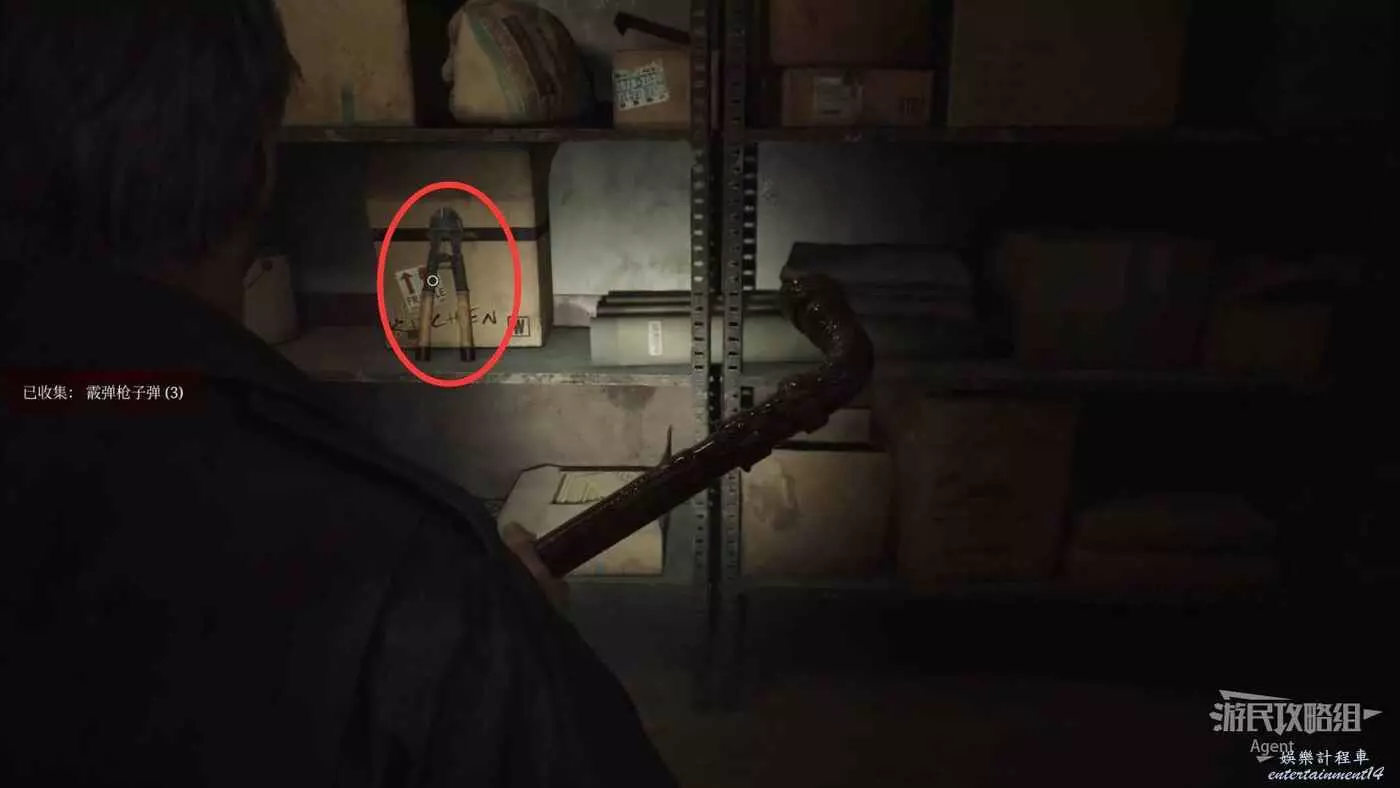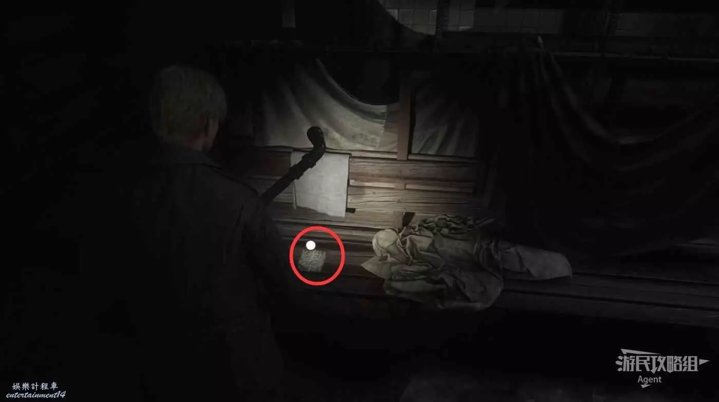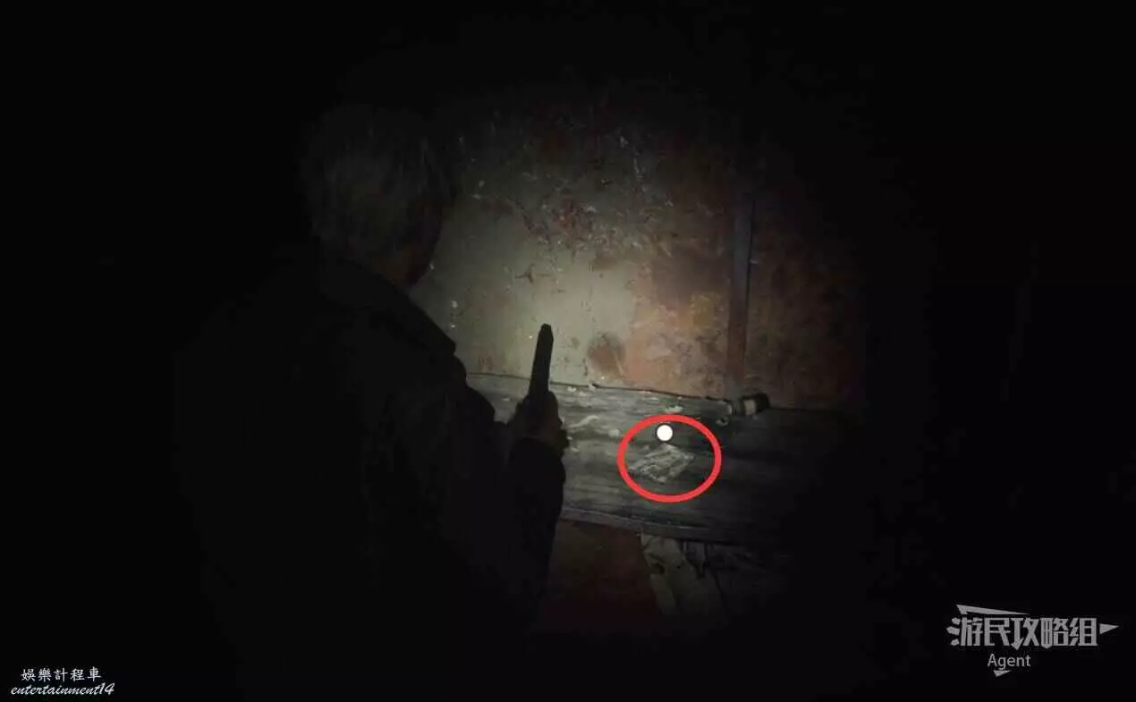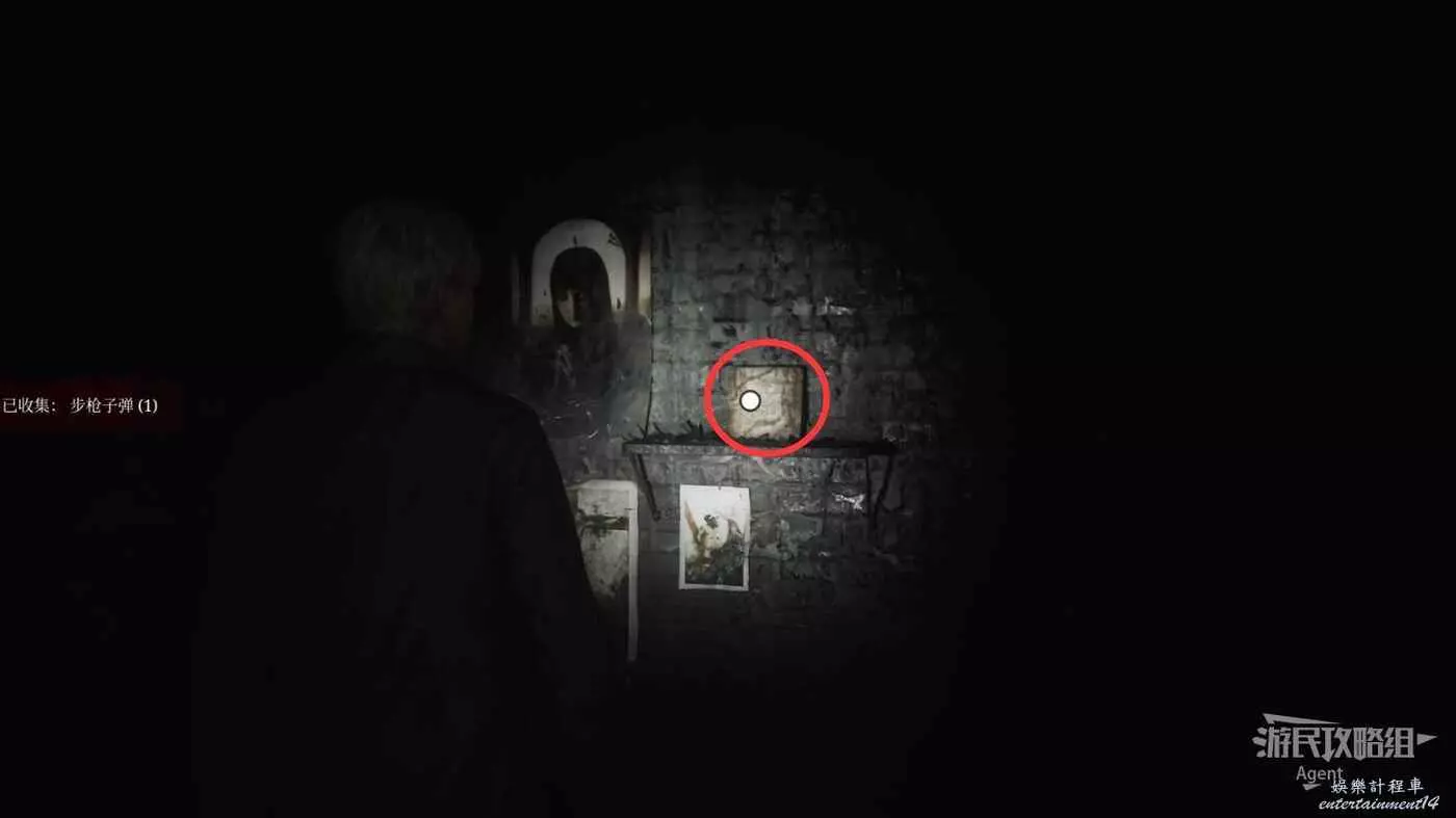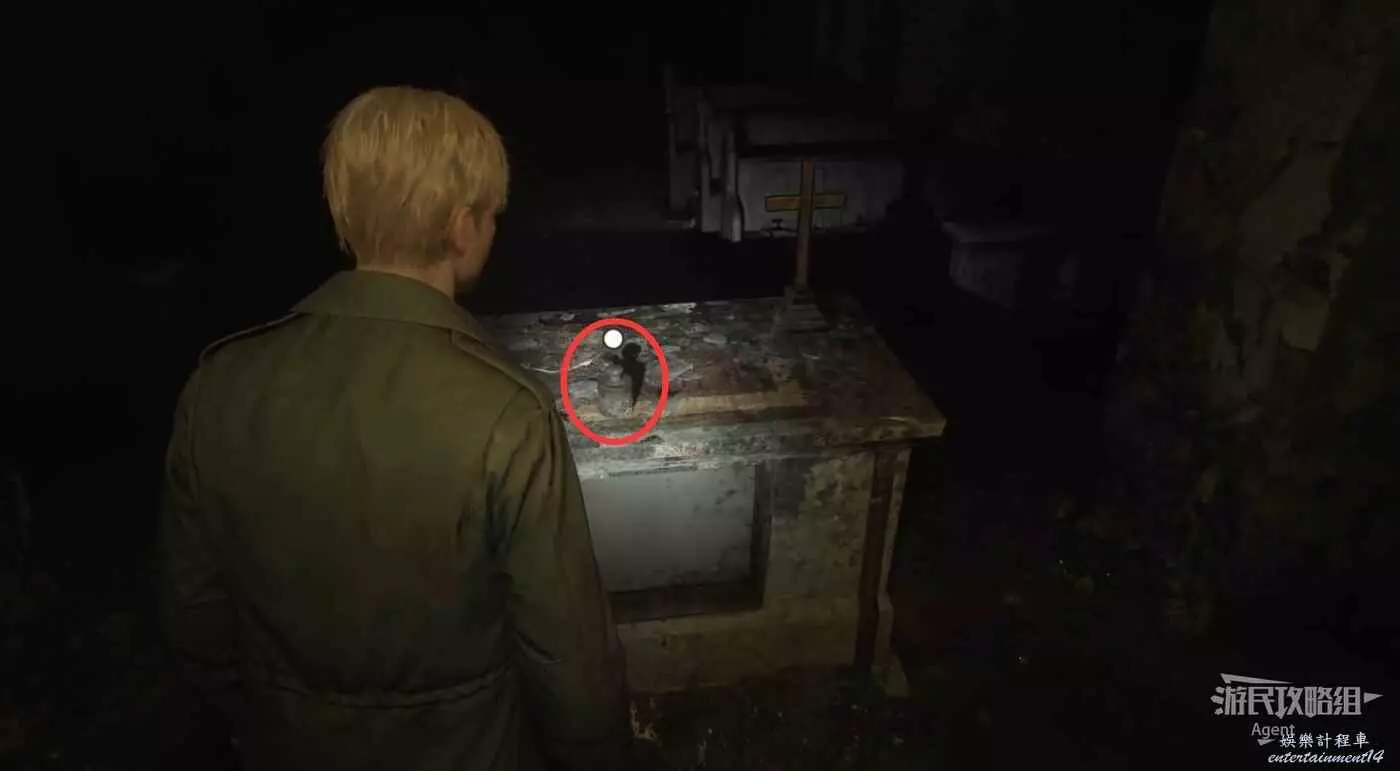 最後往南走,在下圖位置的牆洞裡拿到【打火機火芯】。