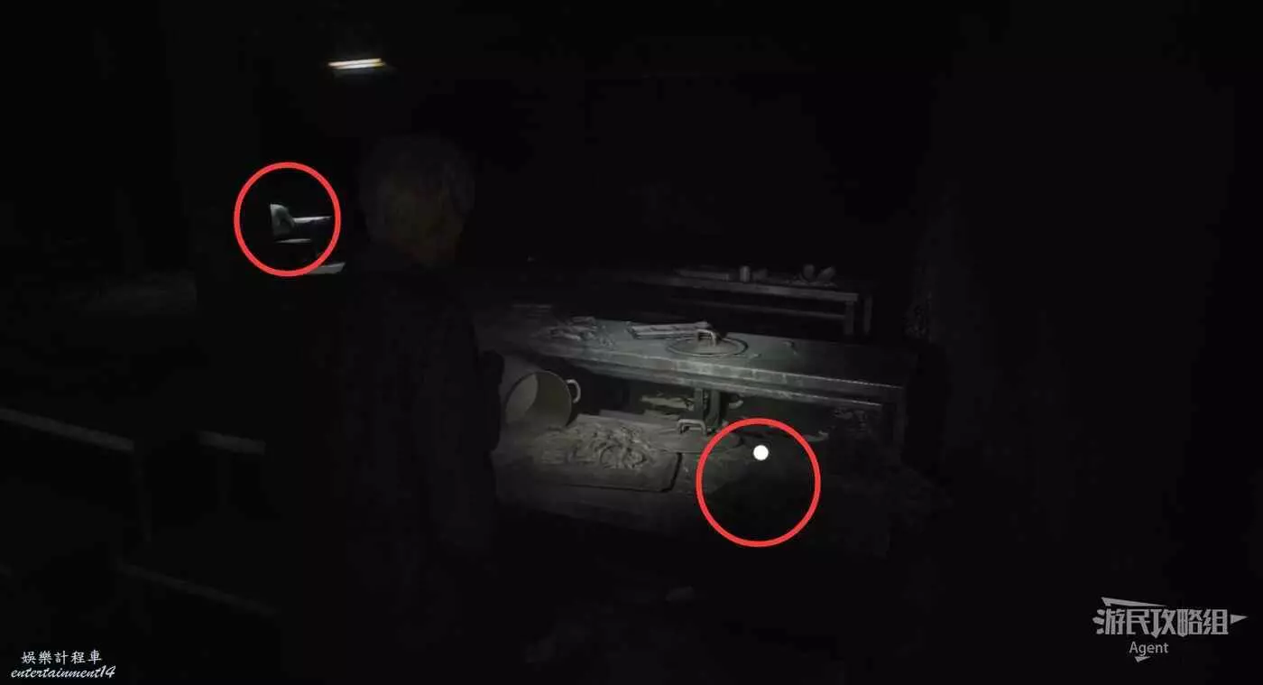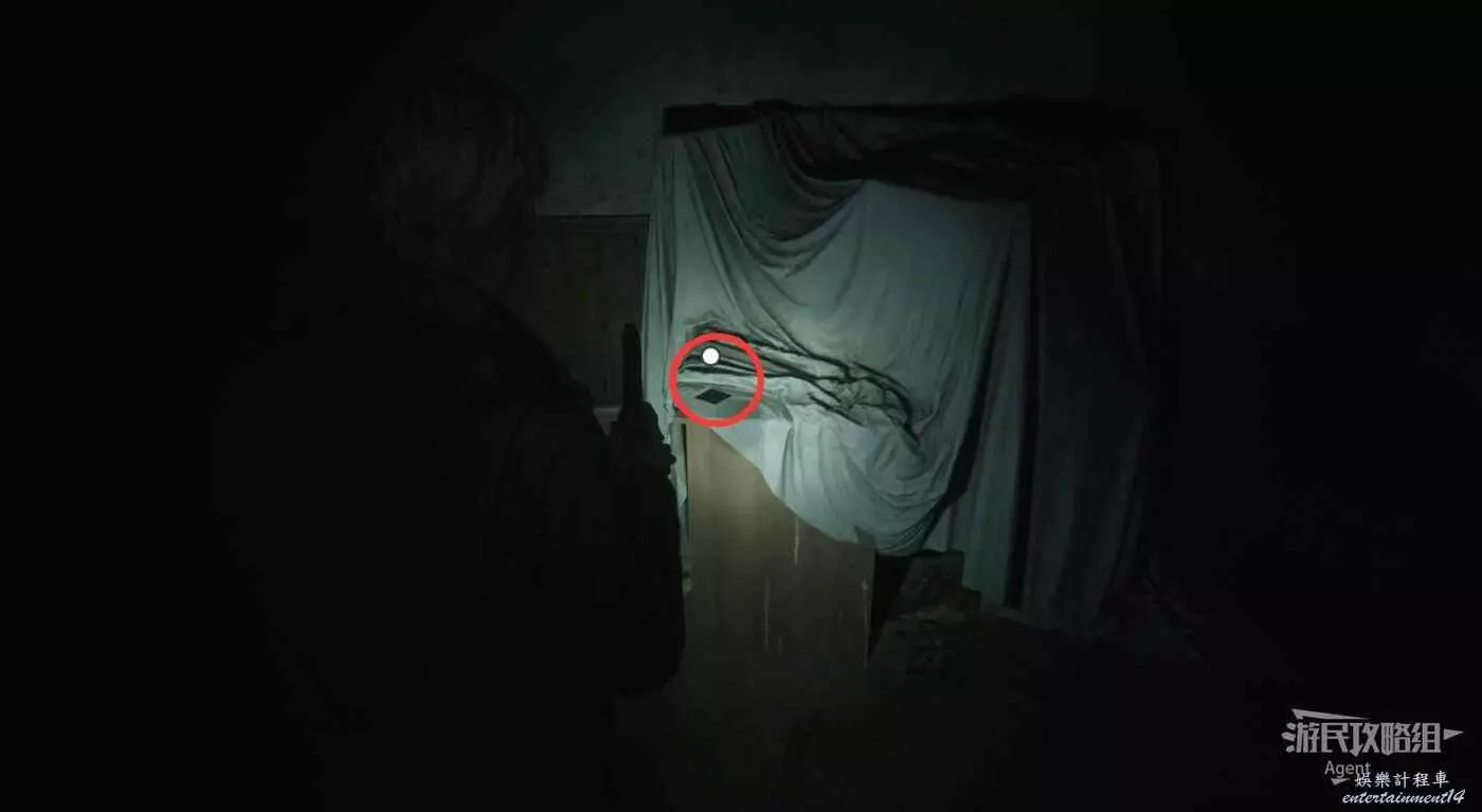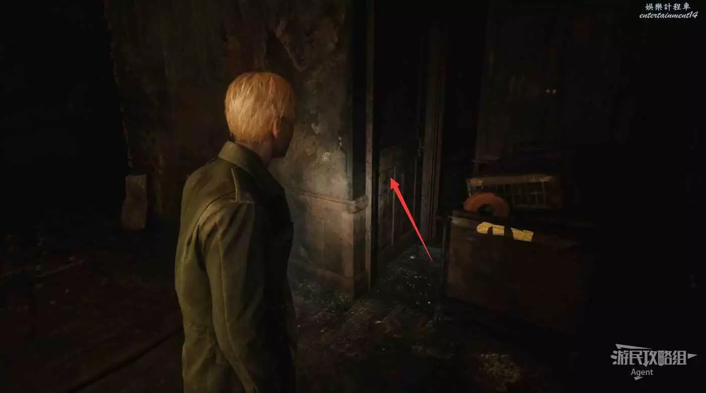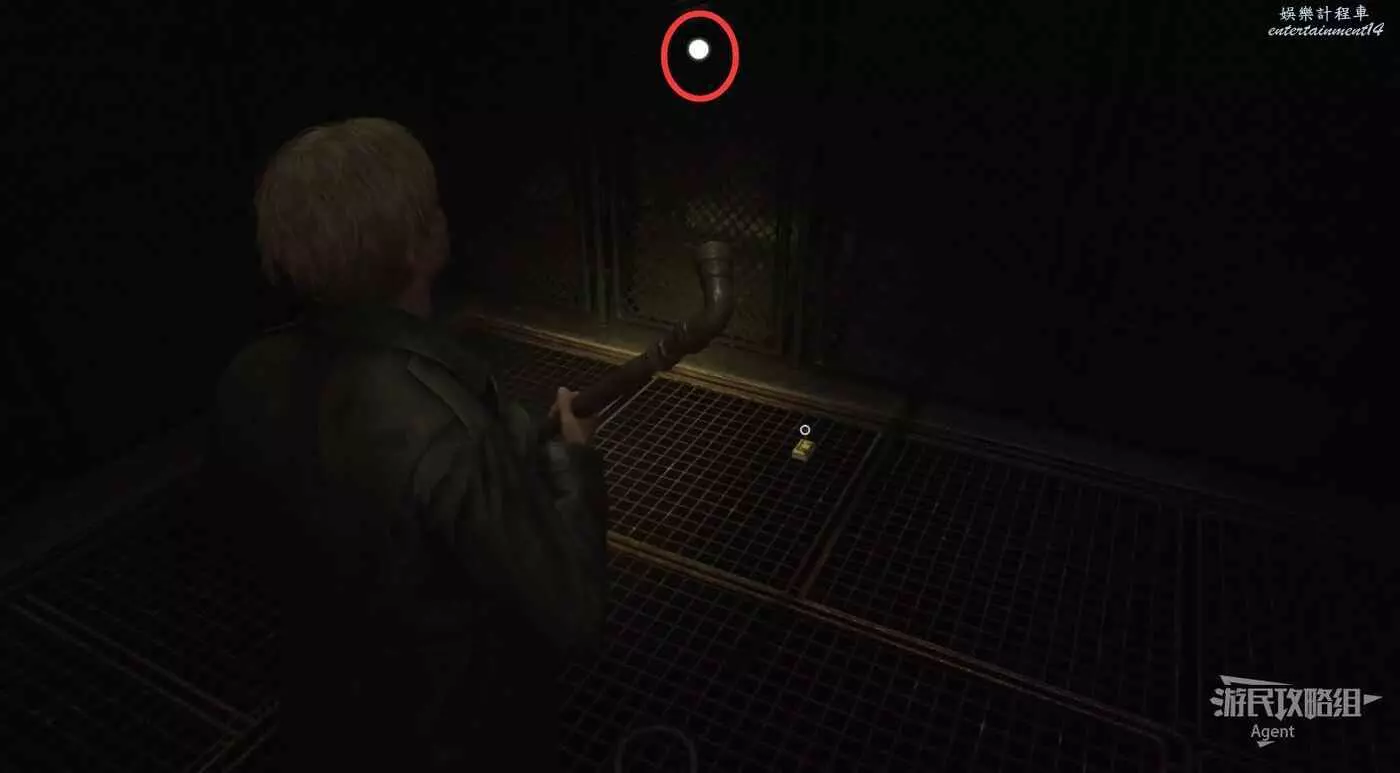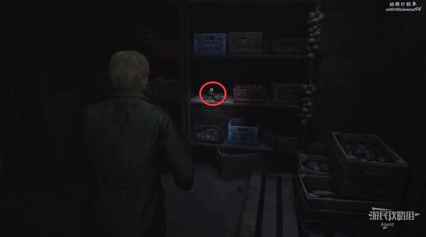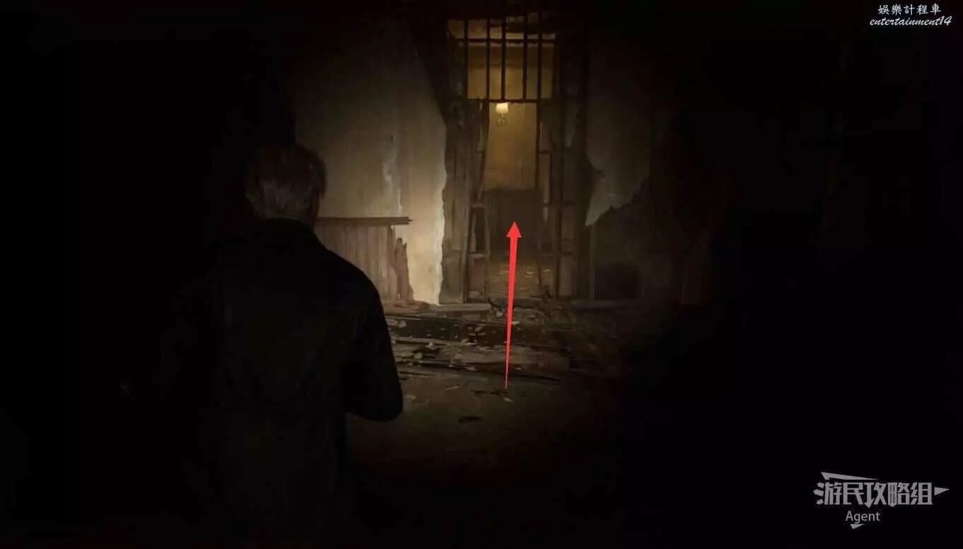 最後往南走,在下圖位置的牆洞裡拿到【打火機火芯】。