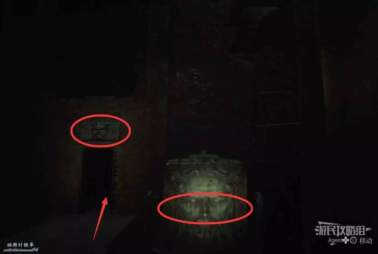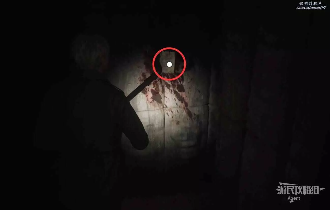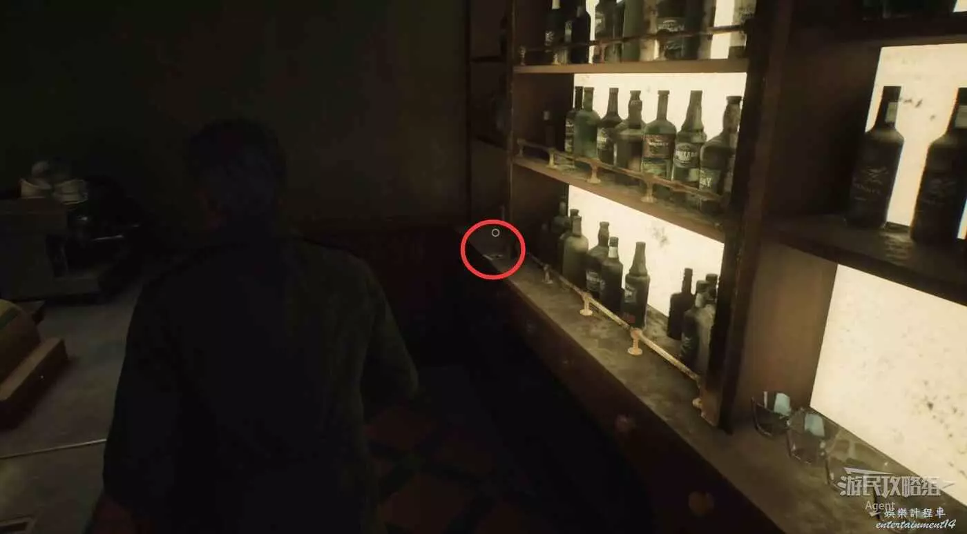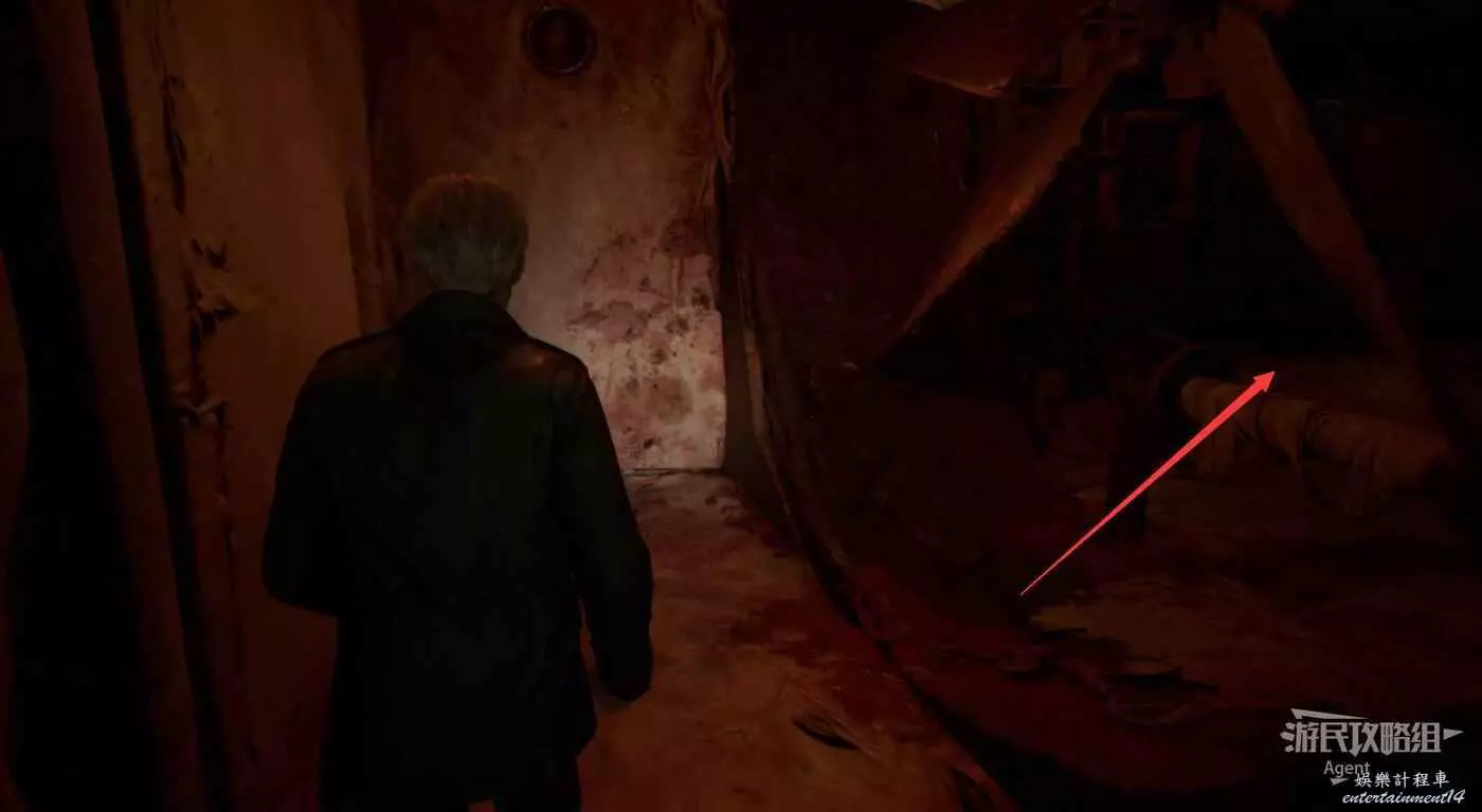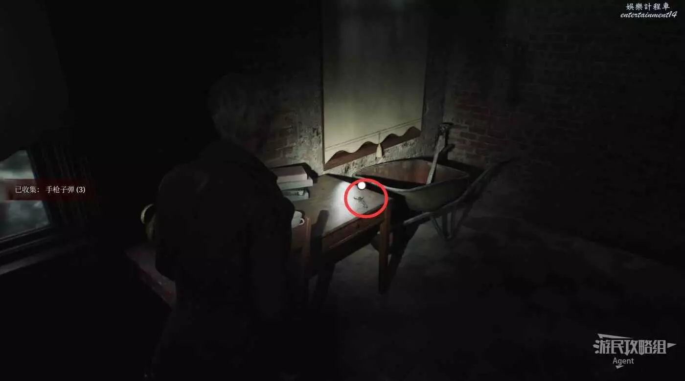 最後往南走,在下圖位置的牆洞裡拿到【打火機火芯】。