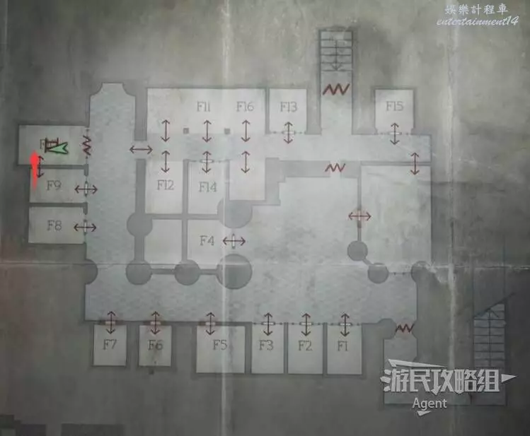 搜刮下各個牢房,從F15對面的牆洞鑽進房間找到控制F5、F6的按鈕。