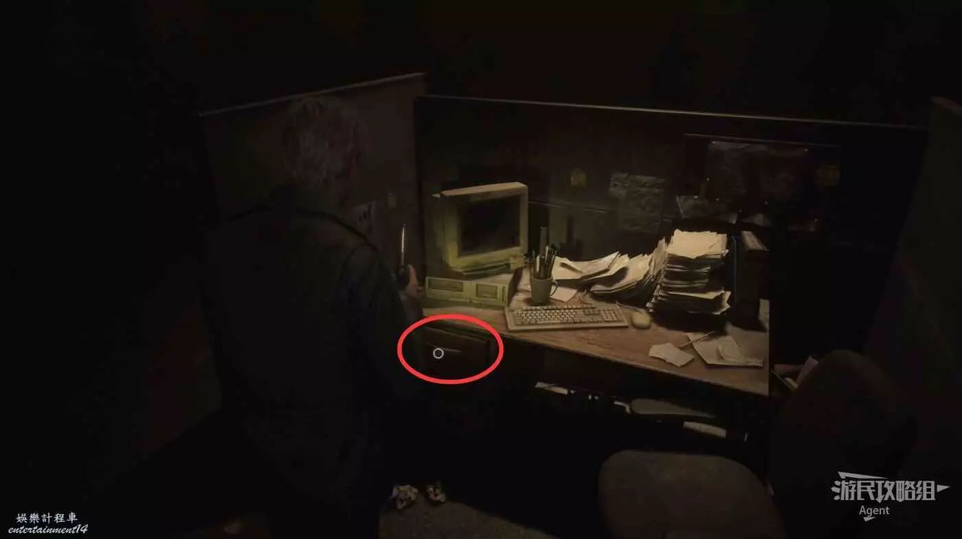繼續往前走來到下圖房間,在辦公桌抽屜裡拿到【鐵鑰匙】。