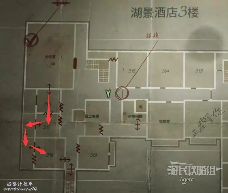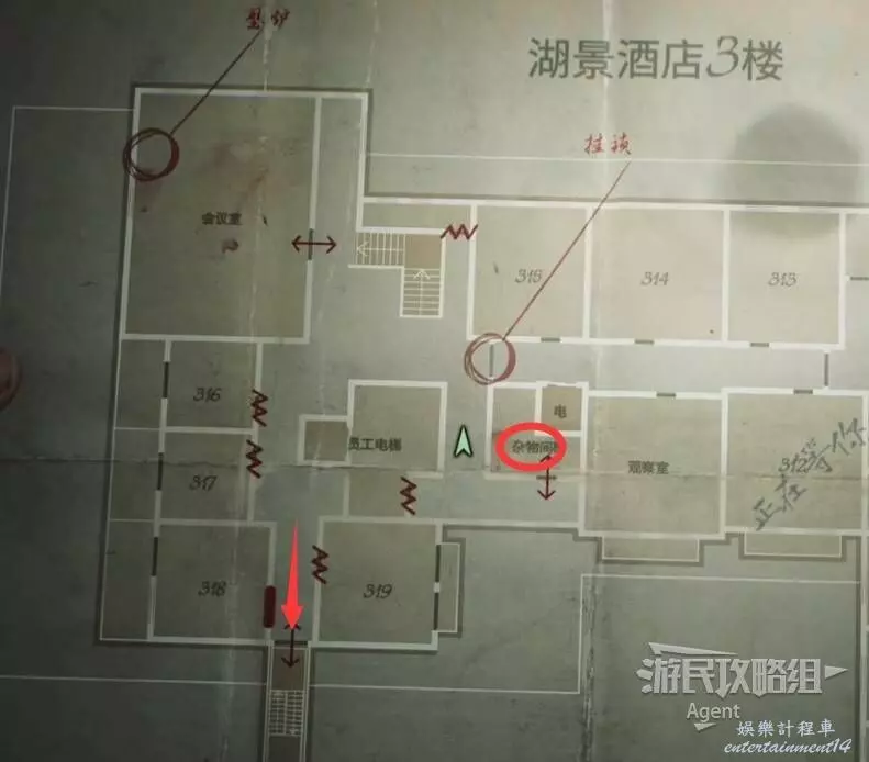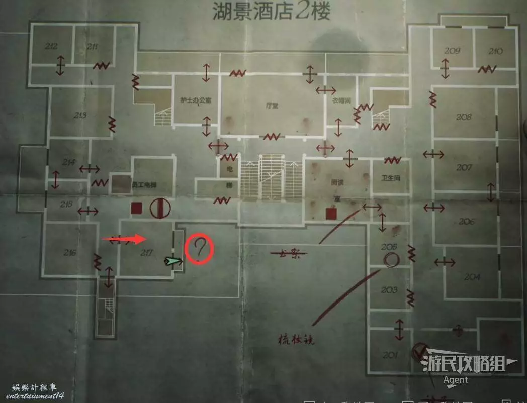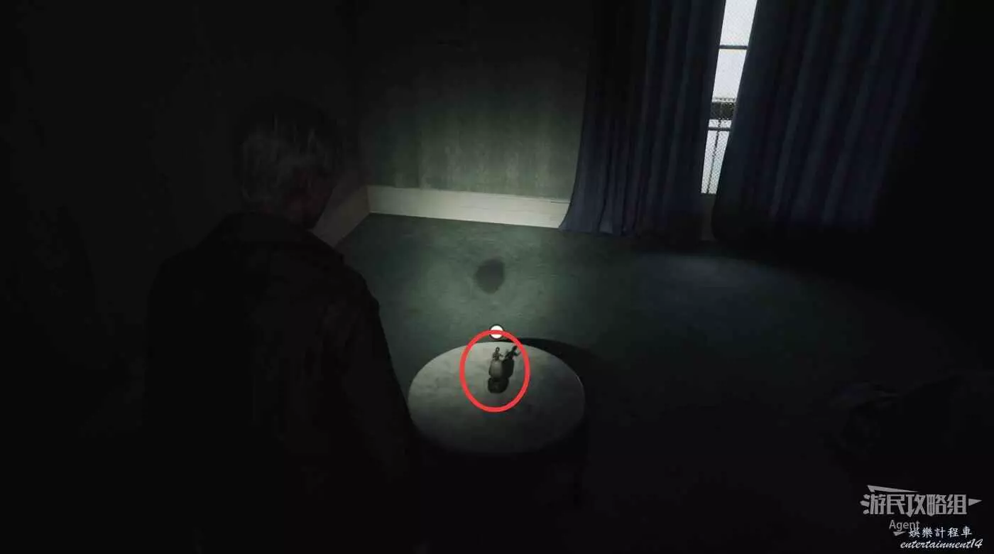 將兩個斷掉鑰匙的部件組合得到狗狗鑰匙,最後在湖景酒店三樓進入觀察室(播放錄影帶的312隔壁)。