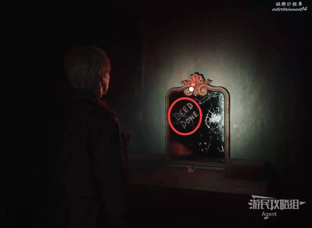 來到二樓的205,把紅色燈泡放到梳妝鏡上,鏡子上顯示密碼“DEED DONE”。
