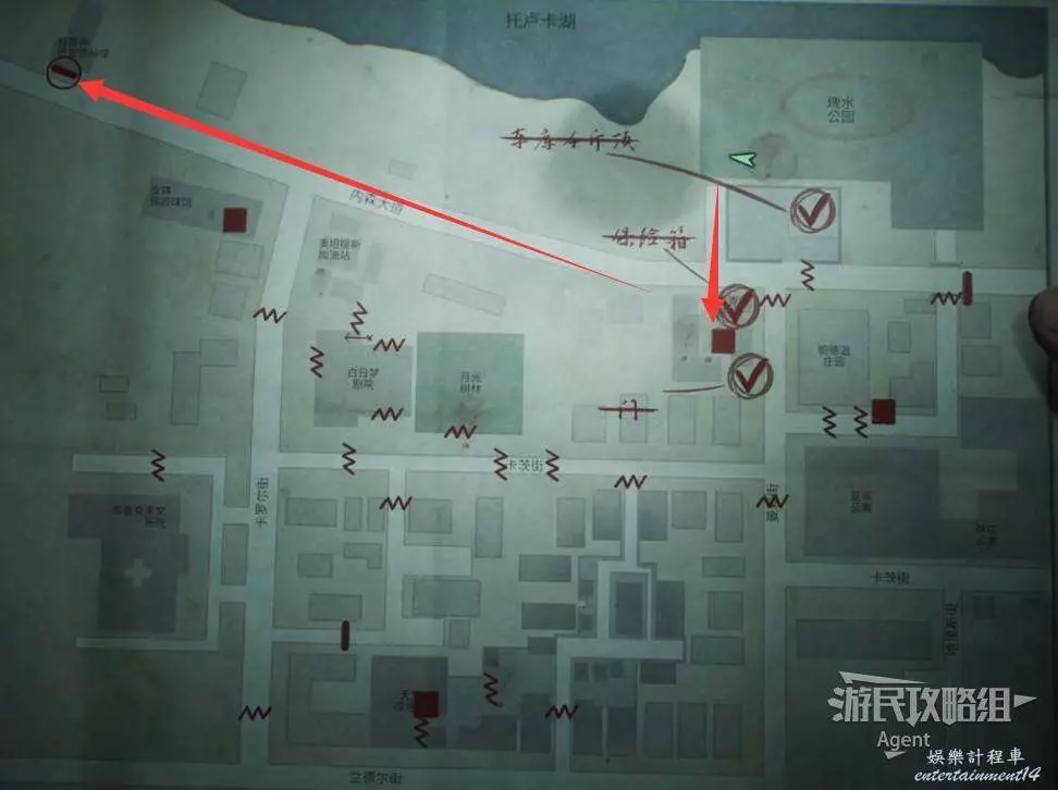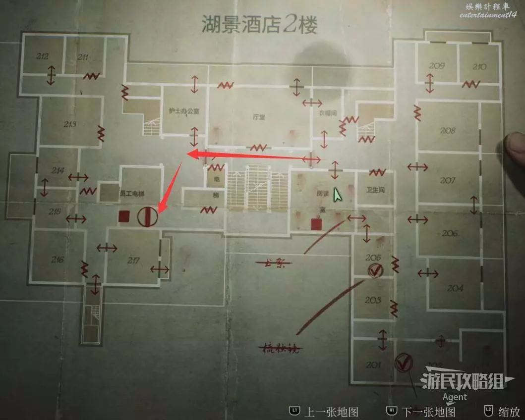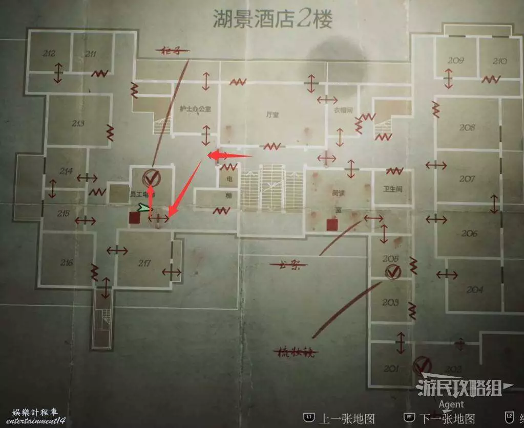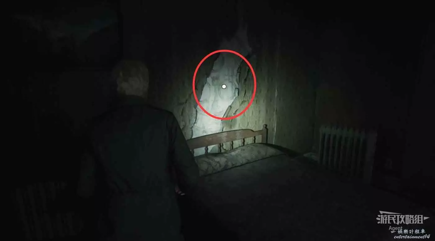 離開瑰水公園,先到傑克旅館的106房查看牆上的圖案,獲得獎盃成就“表面看去井然有序”。(前面說了,這是《寂靜嶺3》的彩蛋)