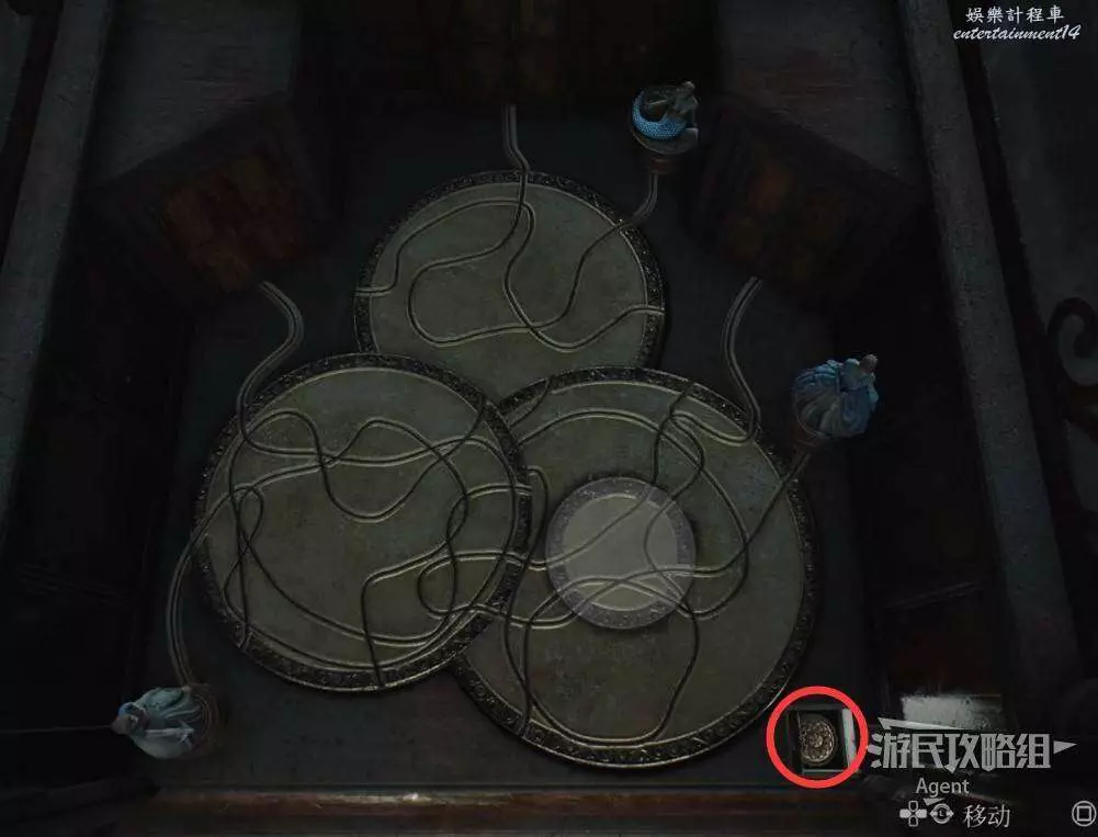 最後按右下角的按鈕,三個童話人物雕像就會通過路徑移動到自己的小房子處,觸發下一步解謎。