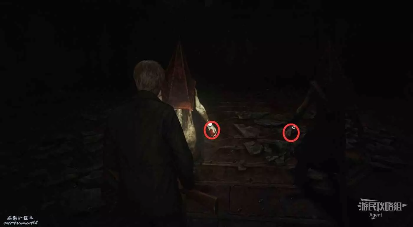 遊戲即將結束時,在擊敗兩個三角頭後,獲得猩紅蛋、鏽色蛋,走進放猩紅蛋的門。