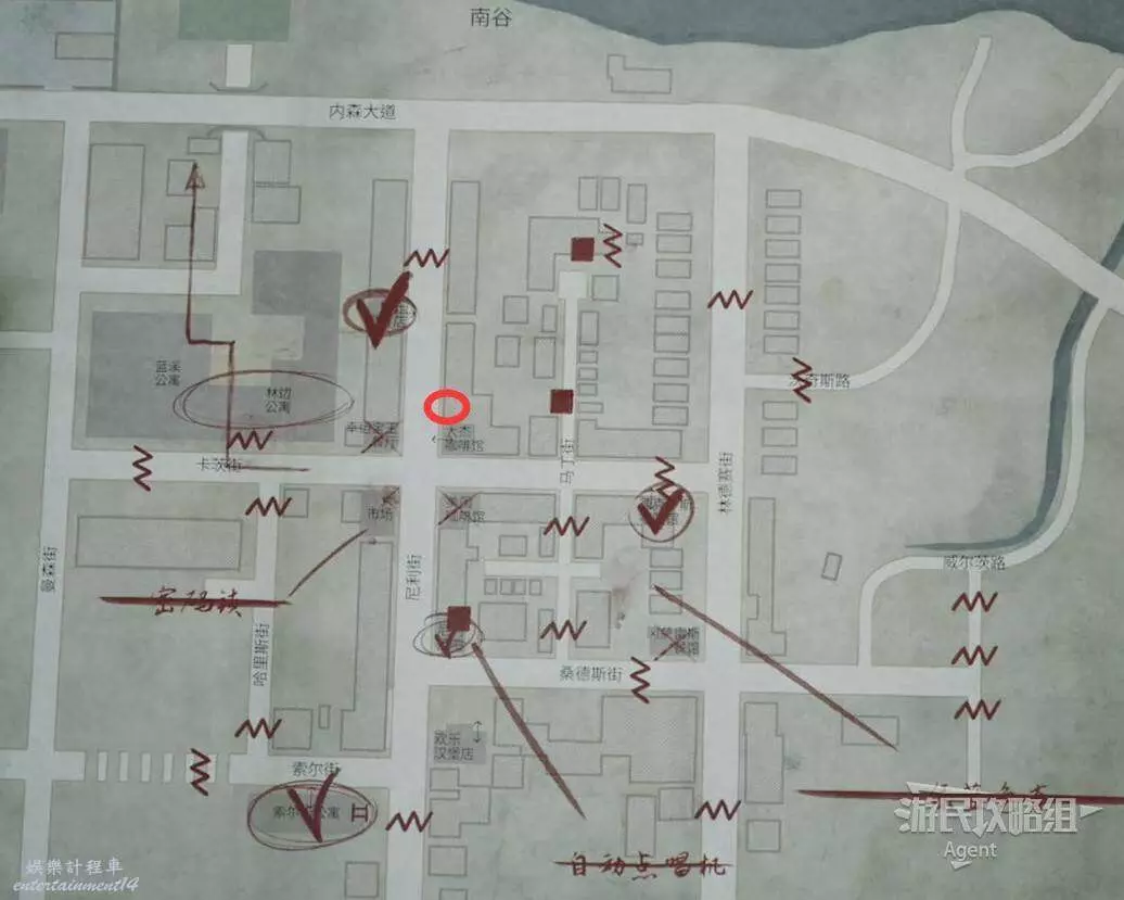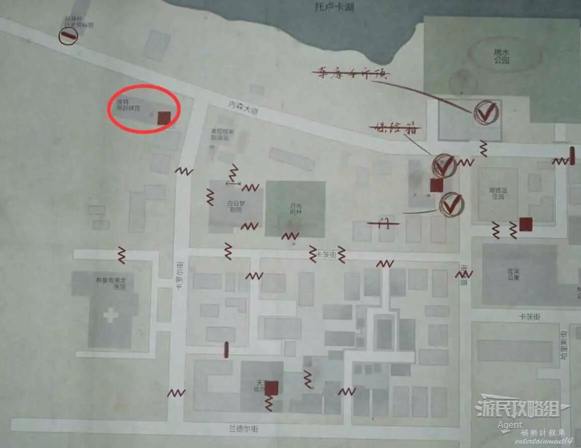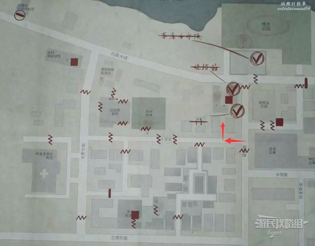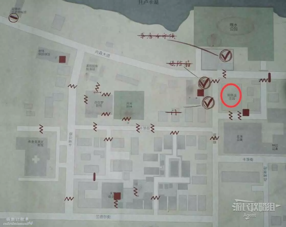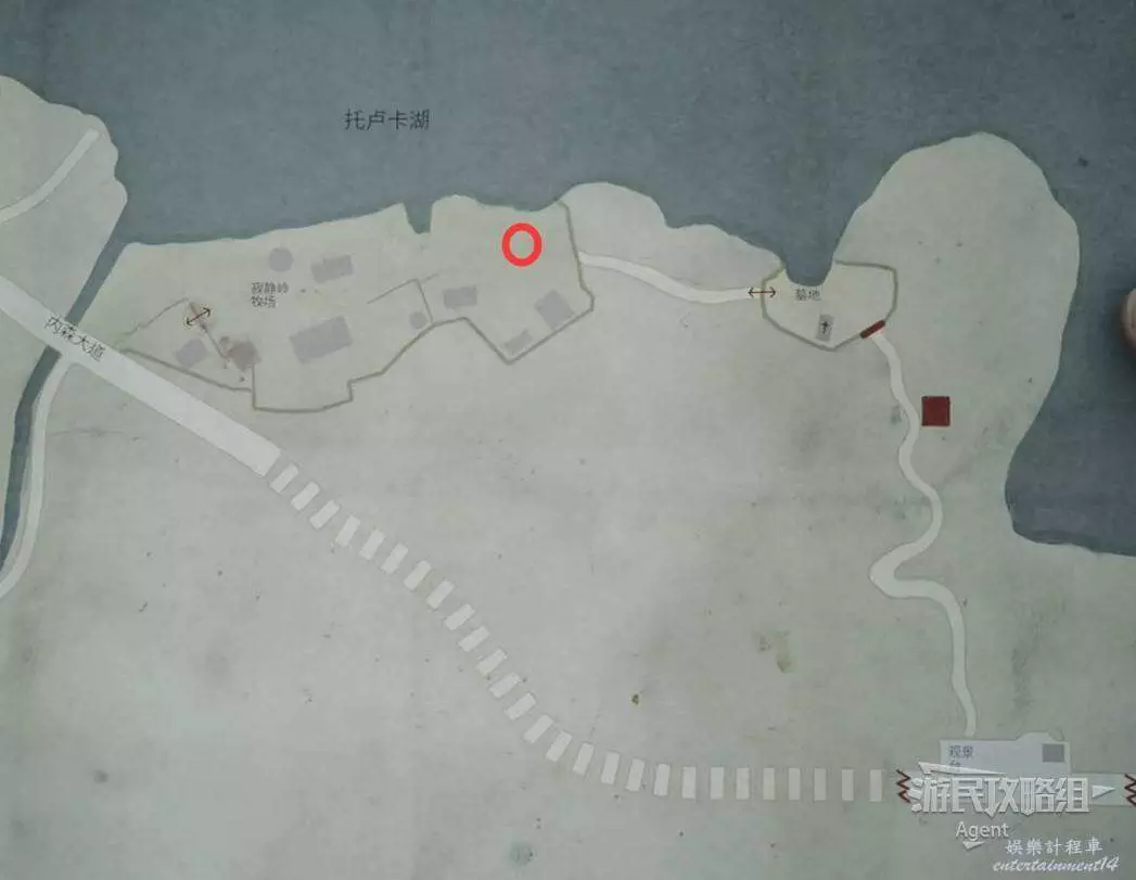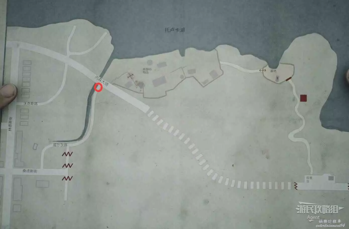 在南穀西部和瑪麗亞經過傑克旅館後,經過鮑德溫莊園來到卡茨街,在下圖位置的狗窩裡拿到“斷掉鑰匙的部件”。