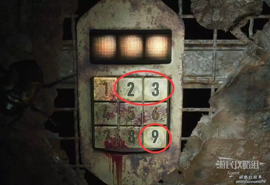 在剛清除完一波蟲子後的間歇,趕緊去開密碼門,239三個按鍵沒有血跡,密碼就是239這三個數位的隨機組合,並不固定,需要多試幾次。