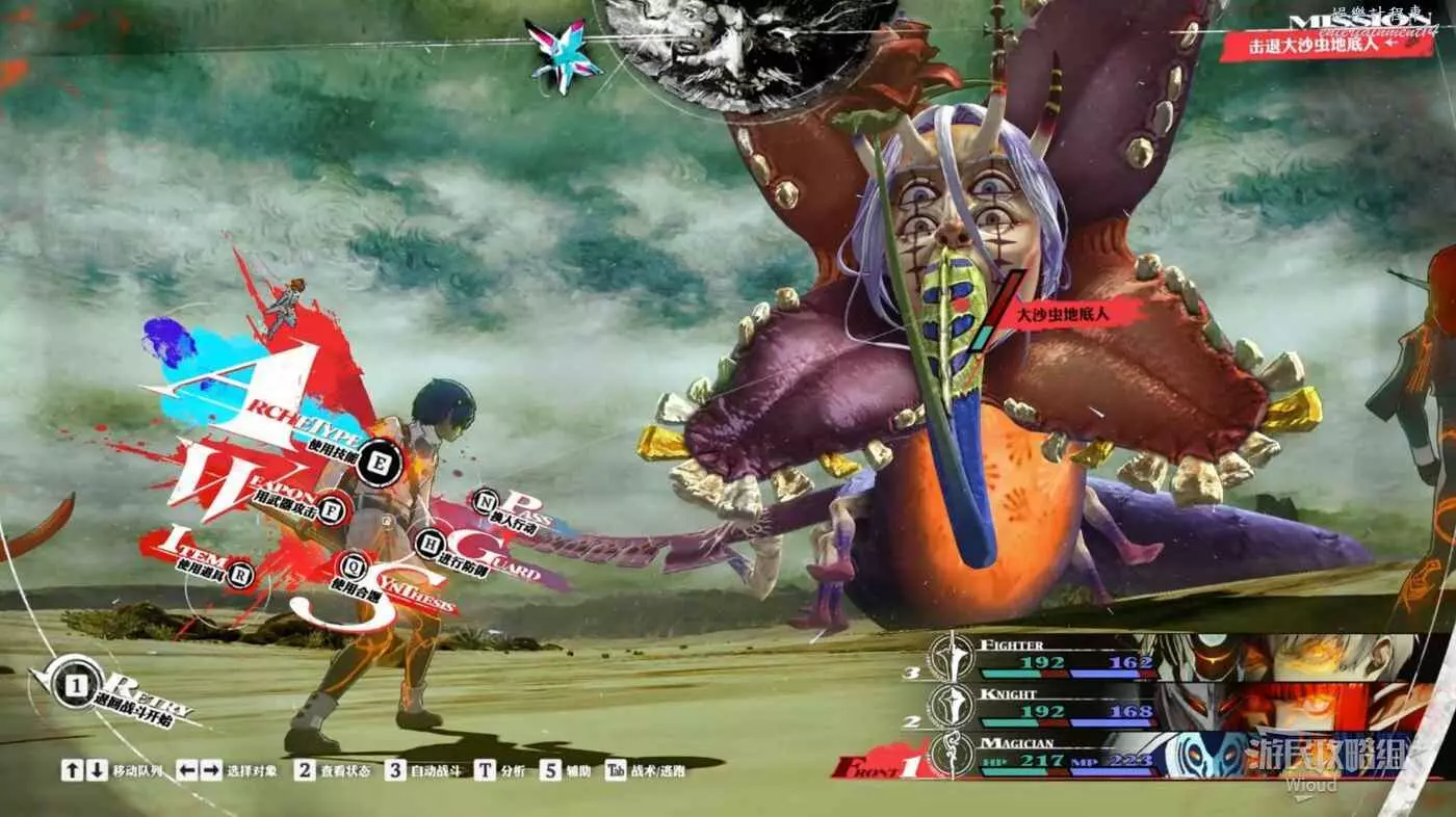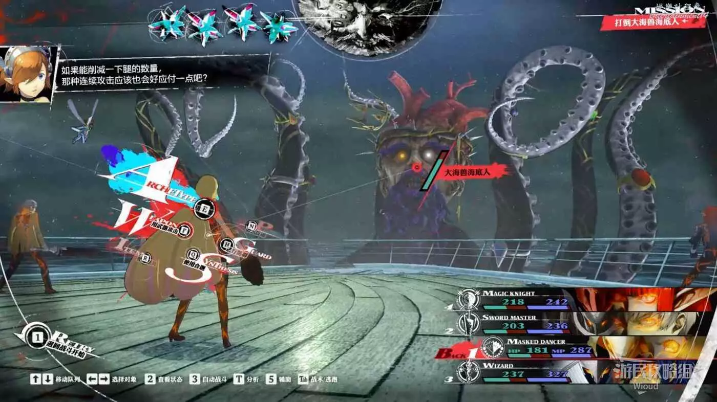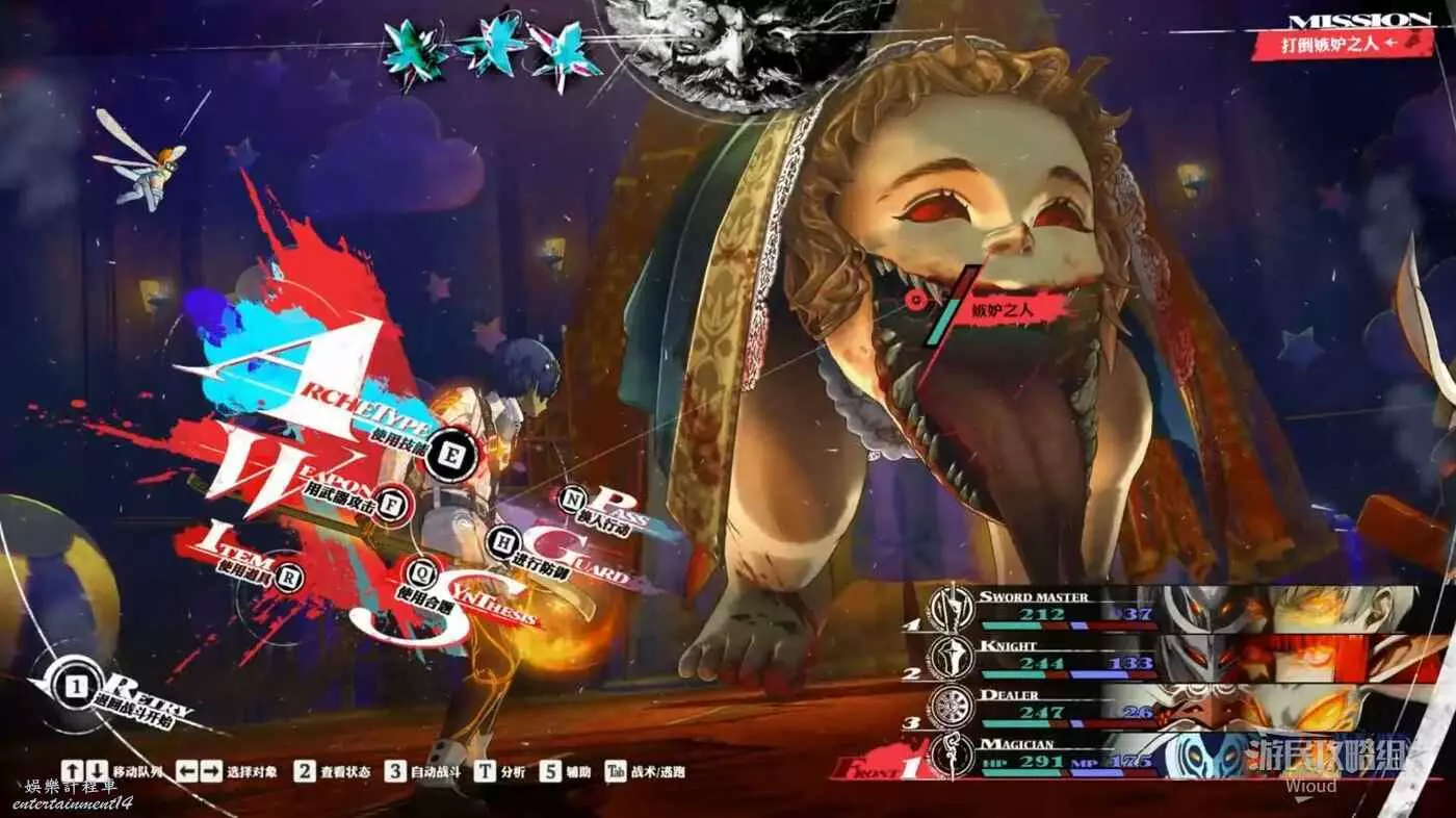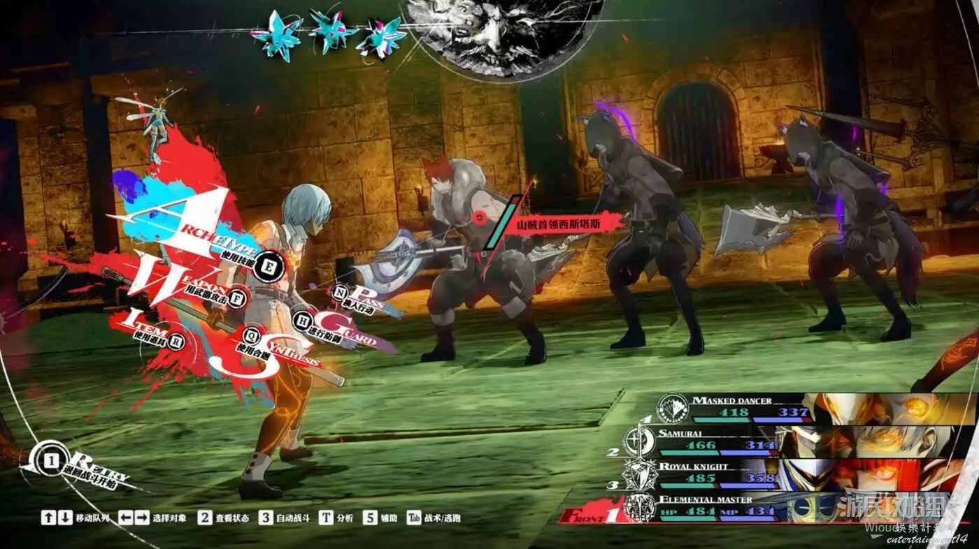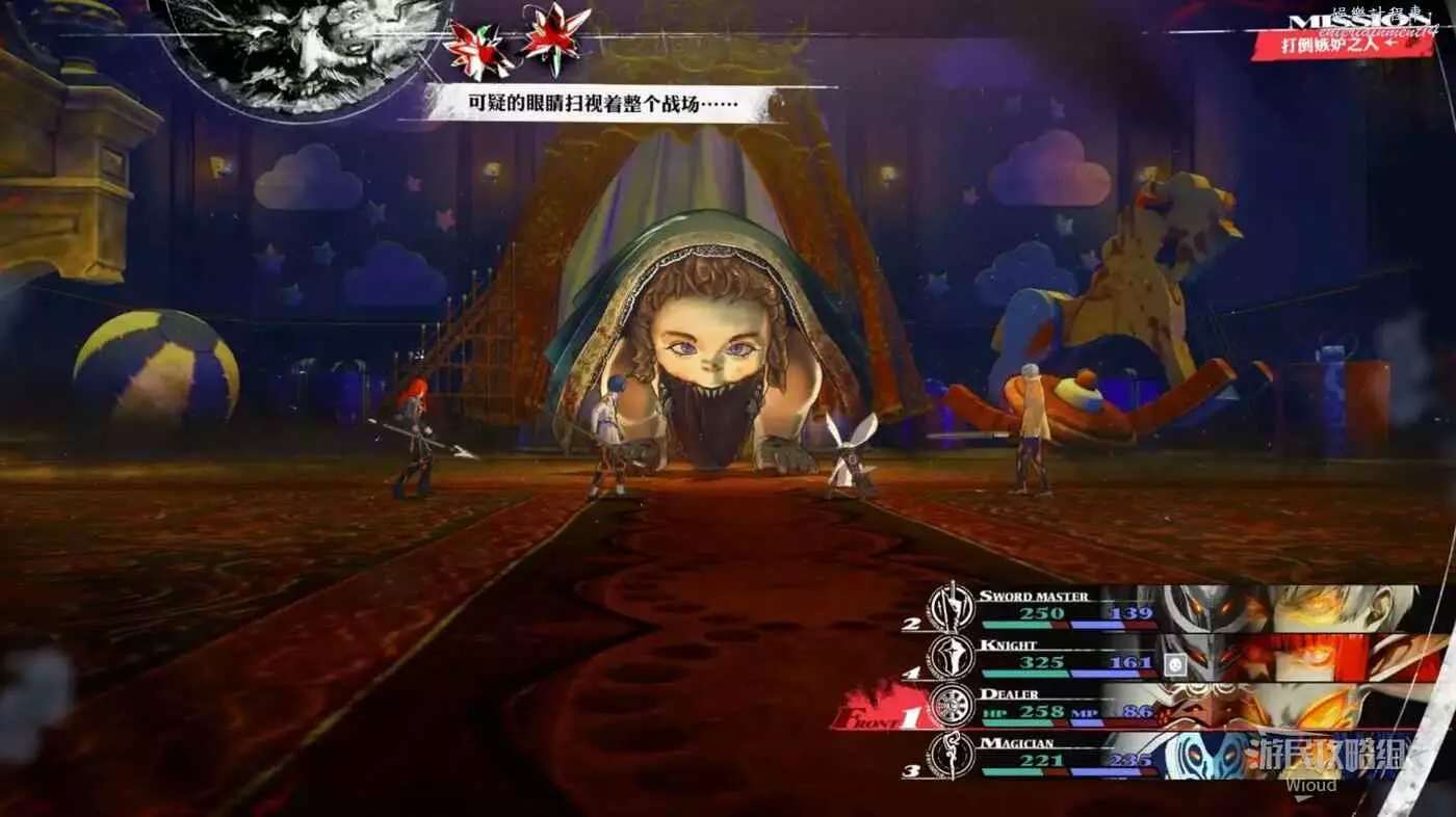 每回合都要使用假面舞者(聖職者面具)來進行全體中等血量回復,然後其他夥伴專職輸出,因為假面舞者(聖職者面具)的回血量很高,可以完美抵消敵人的傷害,就一直這麼磨到敵人死亡即可。