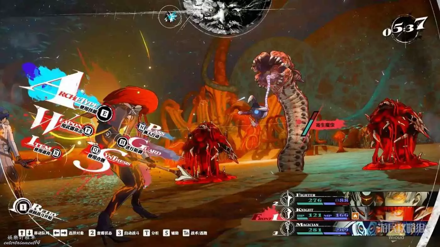這隻怪物戰鬥時能召喚出兩隻小怪,寄生魔蟲與小怪的弱點和抗性不一樣,所以需要用不同的攻擊打不同的怪物。