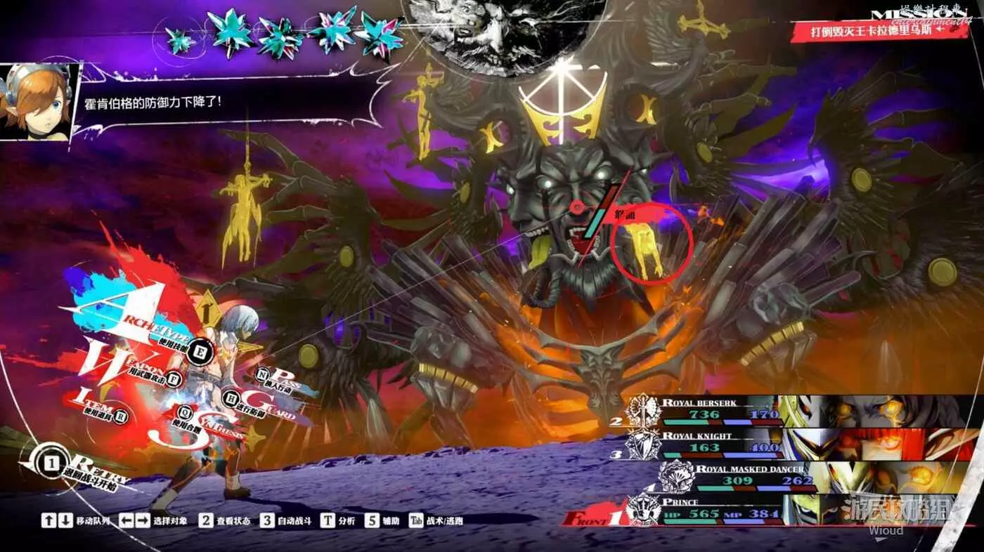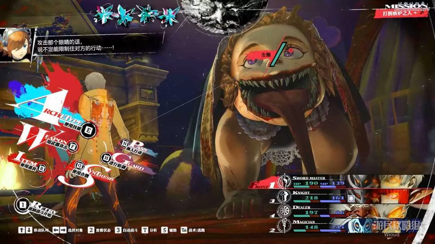 嫉妒之人沒有弱點,開頭先正常削減血量,當看到“可疑的眼睛掃視著整個戰場”時,下一回合最好讓全員都防禦,下一波絕對是全體攻擊。