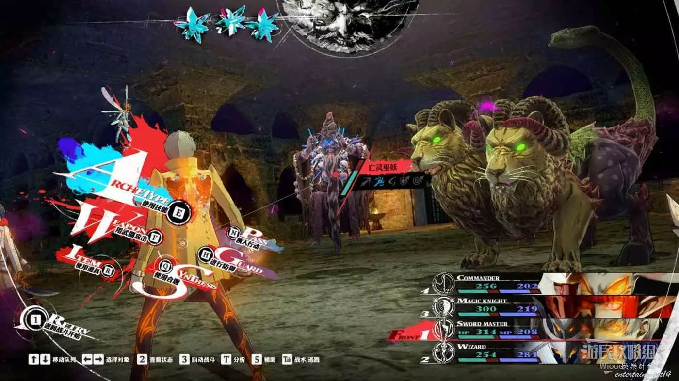 然後用物理與火、冰以外的魔法打槍兵,用火與風屬性的魔法打冰獸,打到後面槍兵還會獻祭自己給冰獸回血,這時專注打冰獸就行。