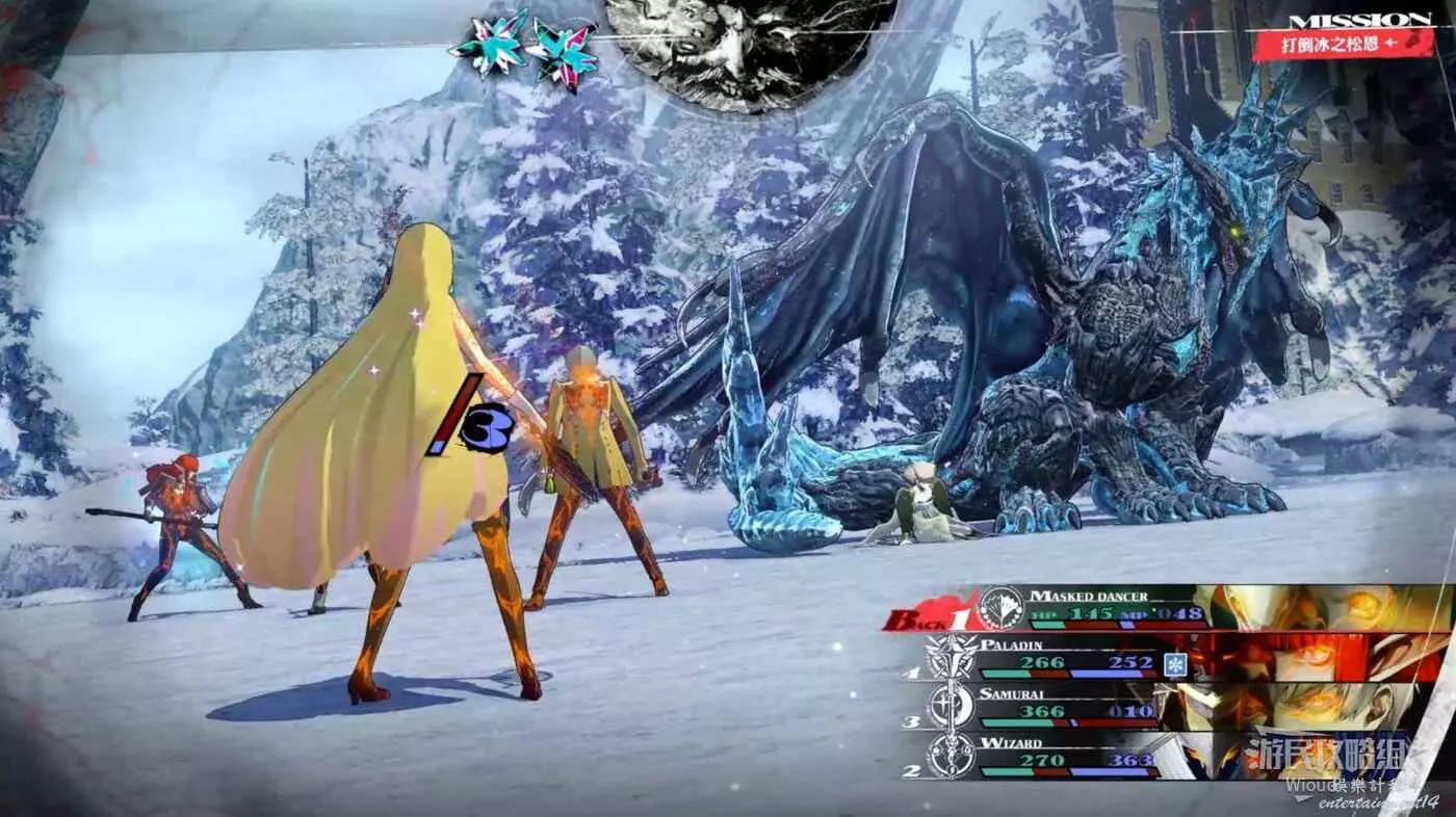 後續的回合朱娜姐姐會為冰龍展開魔法屏障,此時所有魔法傷害無效化,因此將隊內的物理戰士轉為核心輸出位元,法傷單位負責輔助。