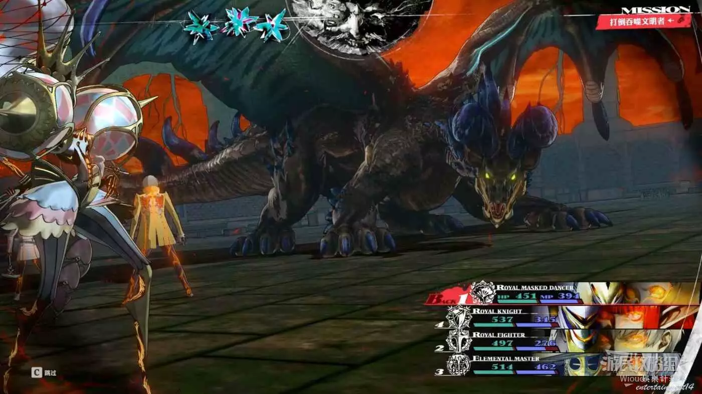 走到塔頂中間觸發劇情,吞噬文明者完全免疫【火】屬性傷害,戰鬥前期用騎士嘲諷可以有效的吸引龍的仇恨。