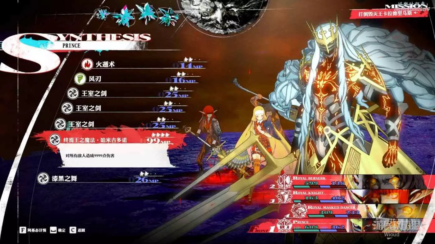 這時只有【火】屬性的攻擊才能奏效,前面直接用【合題】用火屬性魔法攻擊將傷害最大化,後續的屬性變換可以通過【萬能】屬性攻擊。