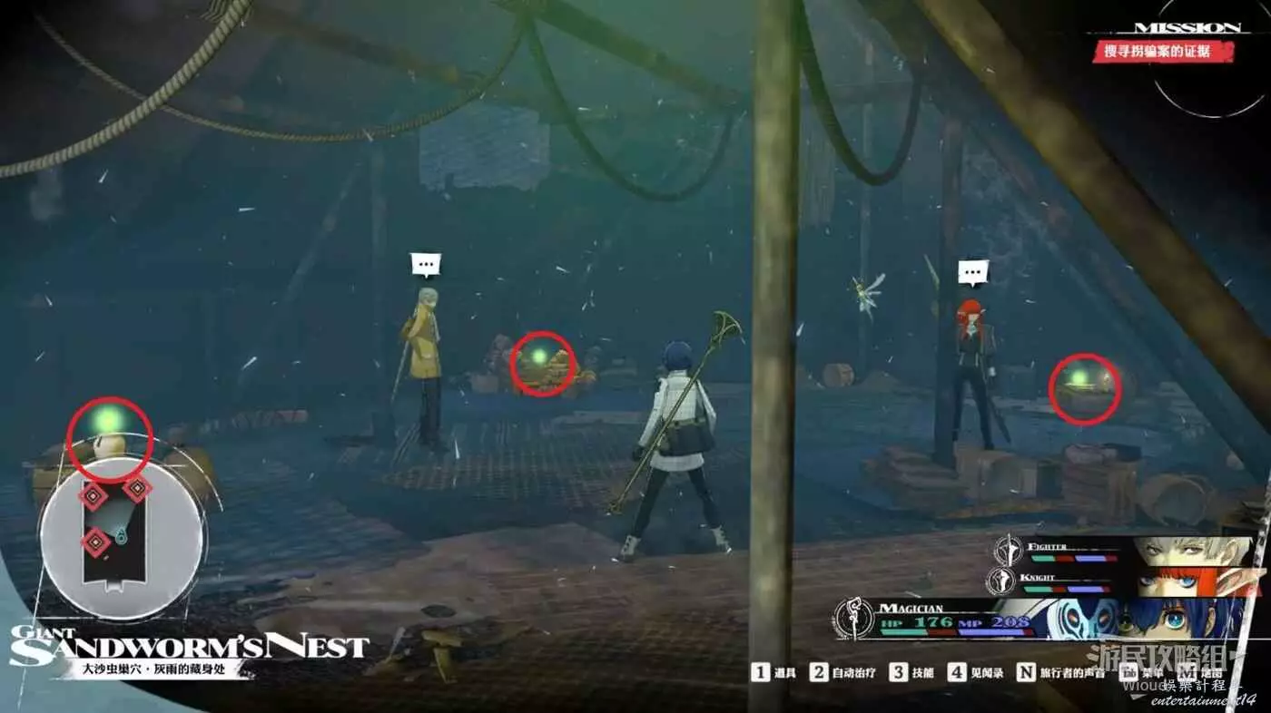 與房間內發綠光的四個物體互動,再次進入劇情,完事與灰雨開始第二場戰鬥。