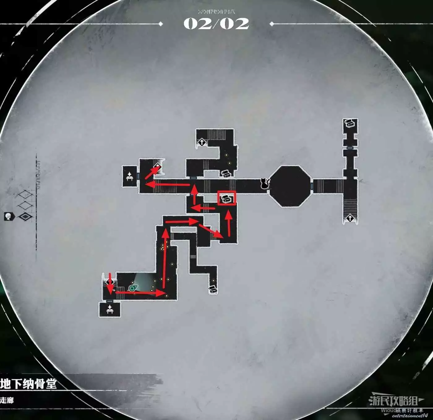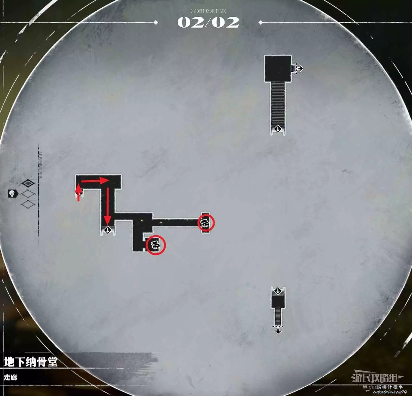 從地圖右側開啟最後一個寶箱,直接離開地下納骨室即可。