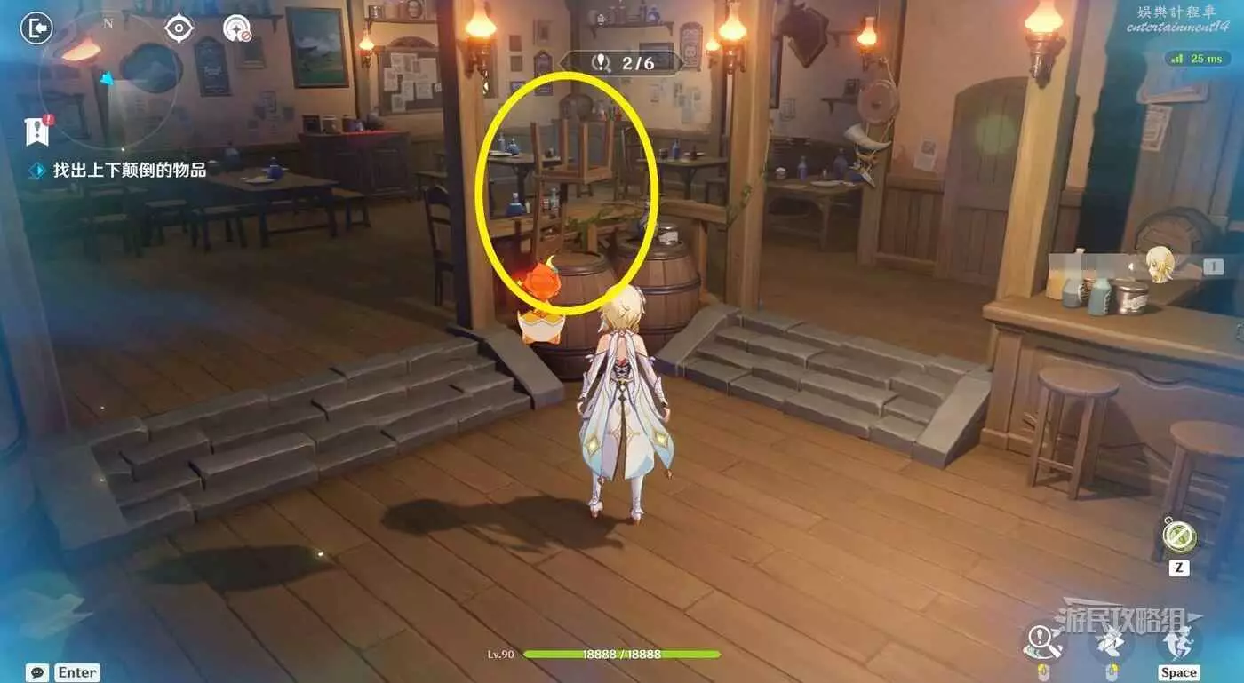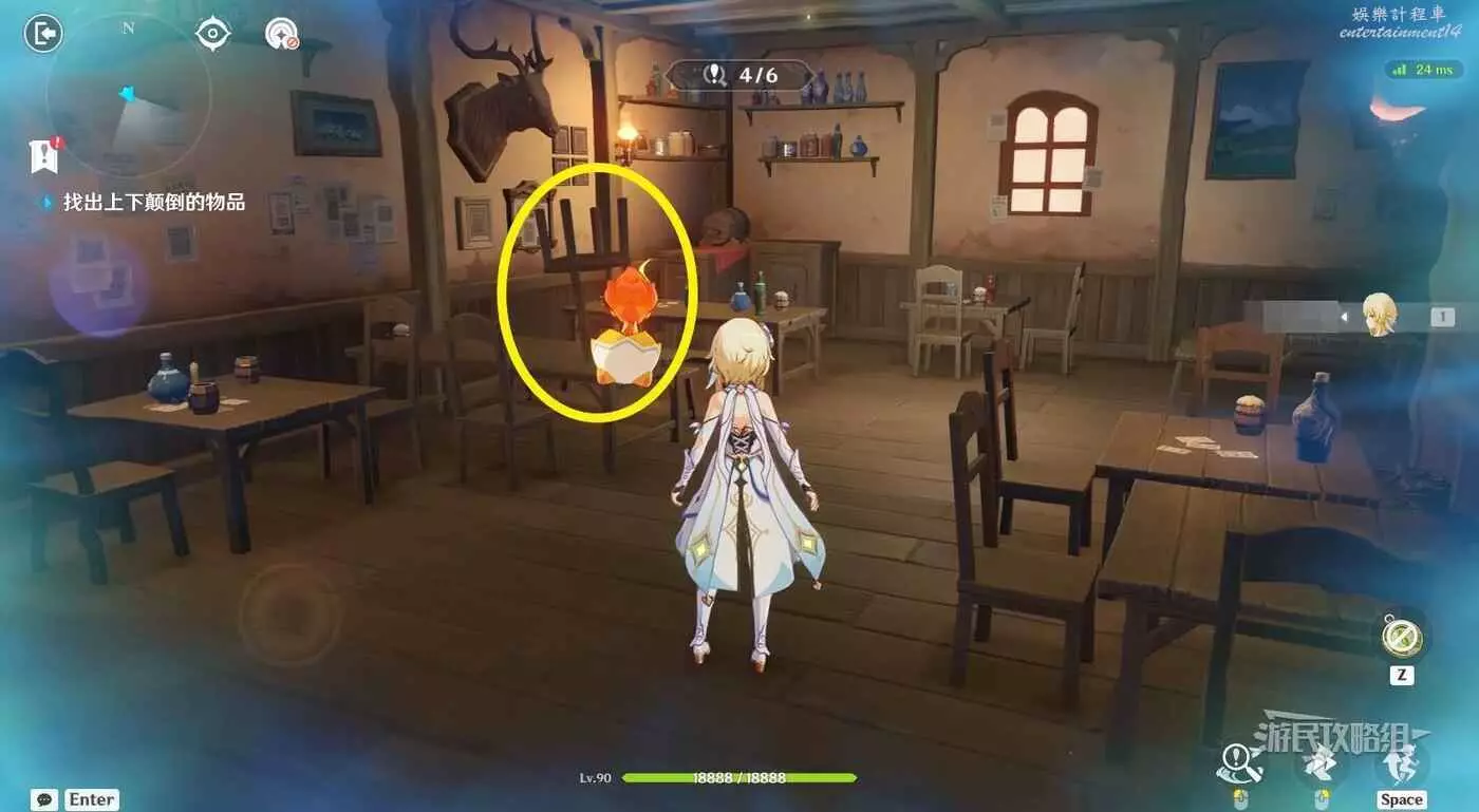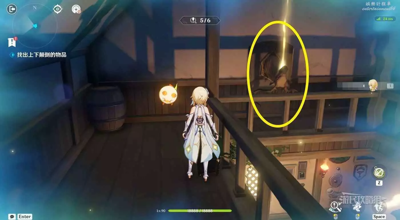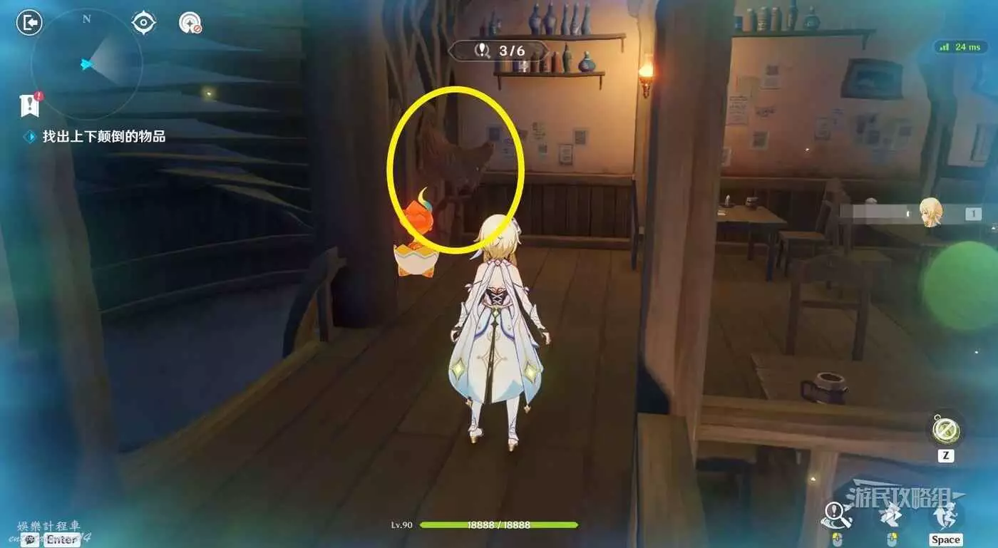 進入關卡後,與柯林伍德對話開始糾錯。在夢境中分別點擊倒懸的【椅子】和【掛飾】。位置如下圖所示。一樓有三處,二樓有三處。