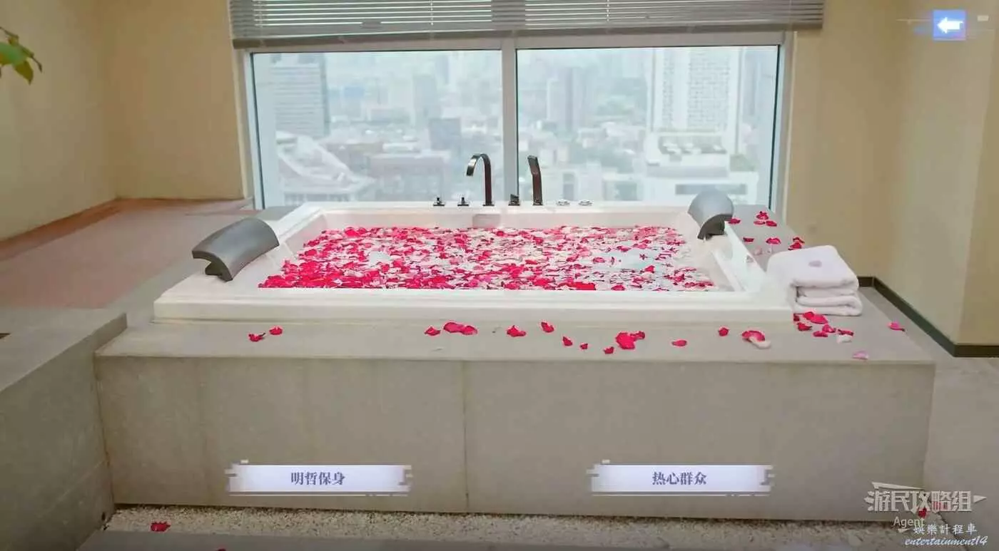 高宛秋在浴池裡,選“熱心群眾”加好感。如果什麼都不選,靜等一會兒遊戲會結束,達成結局“送佛送到西”。