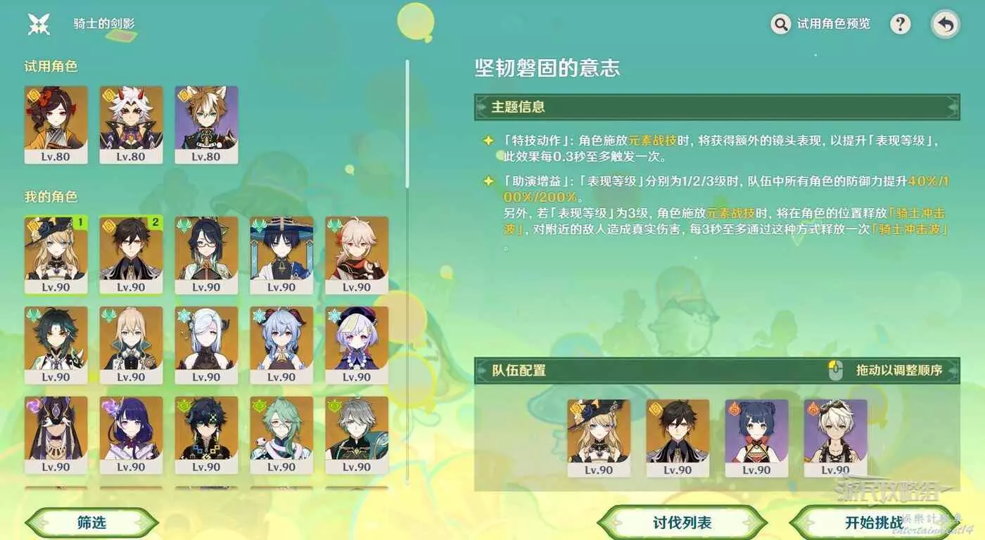 原神 (Genshin Impact) 騎士的劍影第二天滿獎勵陣容推薦