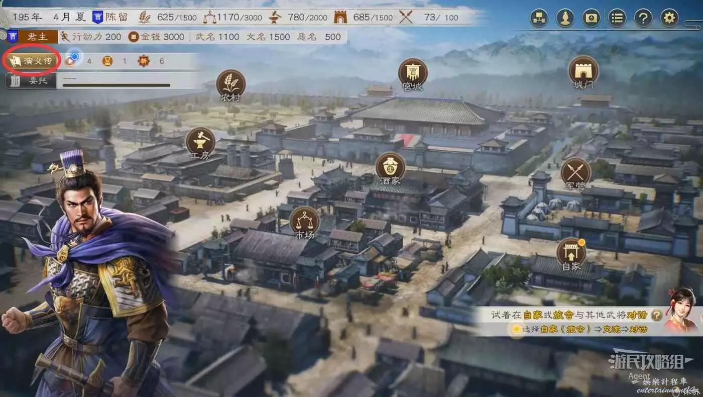 演義傳:在演義傳裡有很多著名的歷史事件,多做這些任務可獲得更好的歷史代入感。還可以找水鏡先生學習遊戲知識。