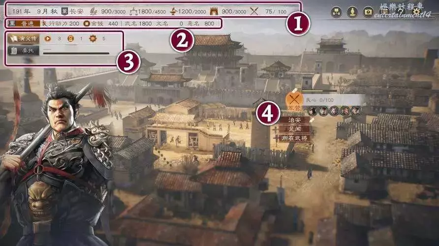根據兵糧的年收入,城市兵糧在每年七月都會有所增長。通過提高商業和治安可增加兵糧的年收入。