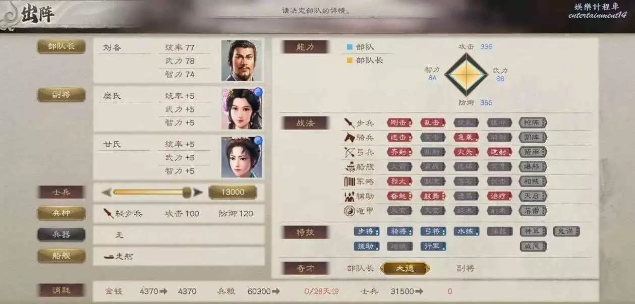 特殊加成【奇才】已確定的包括張飛攻+100/曹仁防+100。