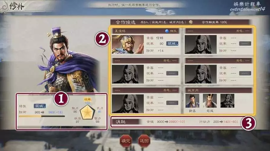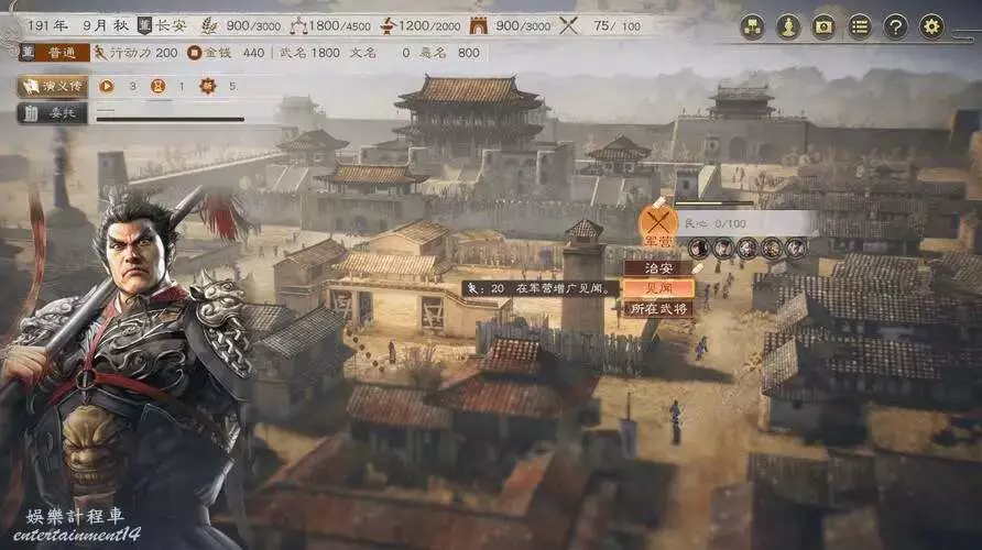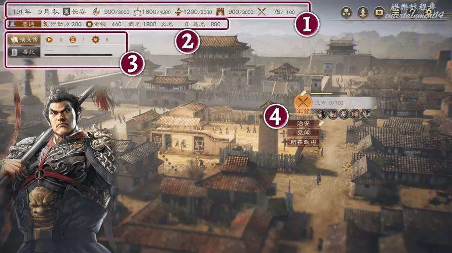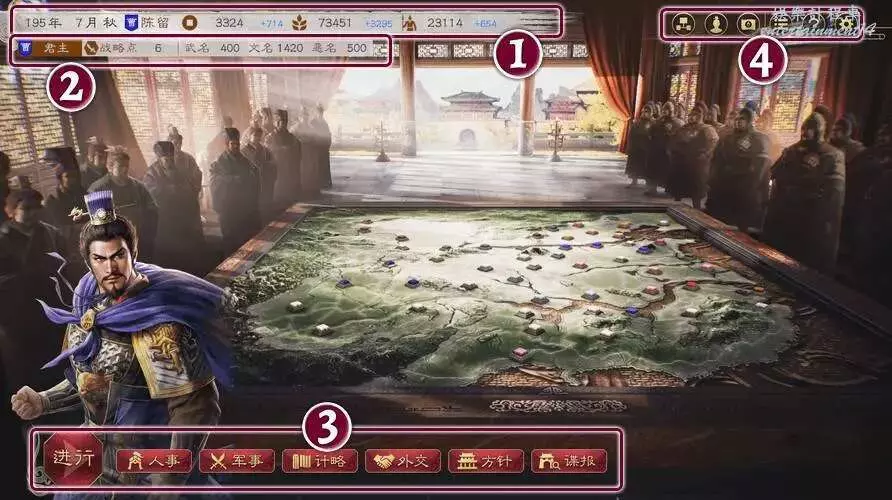 可在城市的設施進行見聞或任務,也可與其他武將加深交情。