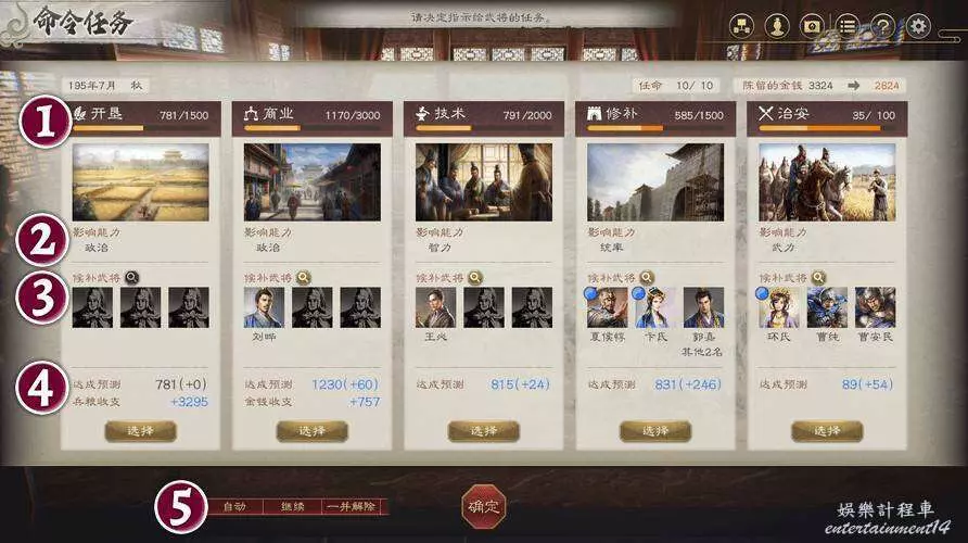 在執行勢力/軍團/城市的戰略後,將決定任務負責人。接下任務的武將會在城市中執行任務。