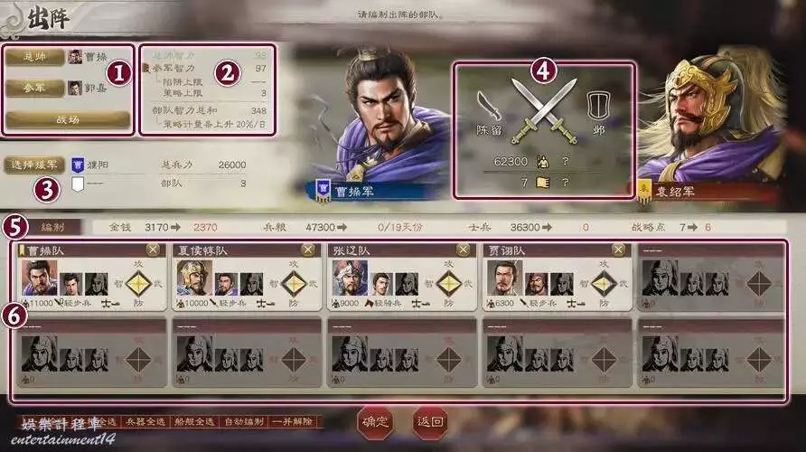 在評定中,如果主角出陣或命令麾下武將出陣,則跳轉至軍議畫面。