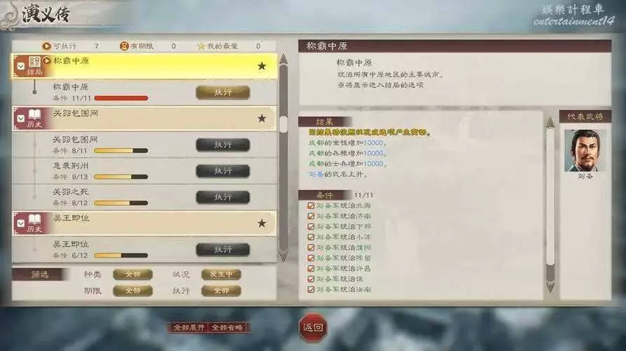 通過執行“結局”的演義傳,即使尚未實現天下統一,也可達成遊戲通關。