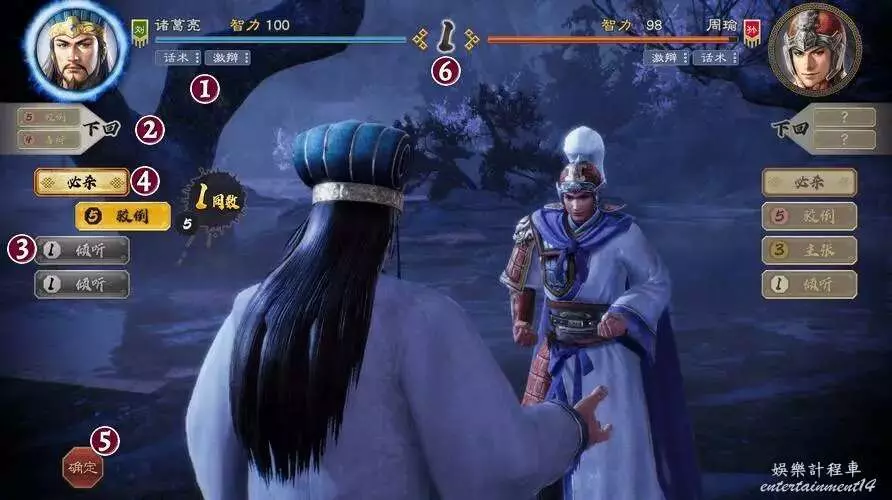 武將有不同的“身份”,諸如君主或軍師等。不同身份可執行的指令也有所不同。