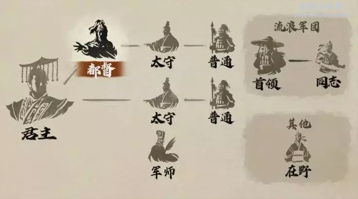 身份為都督/太守/軍師/普通的武將,除身份外還有自一品官至九品官之間的“階級”。
