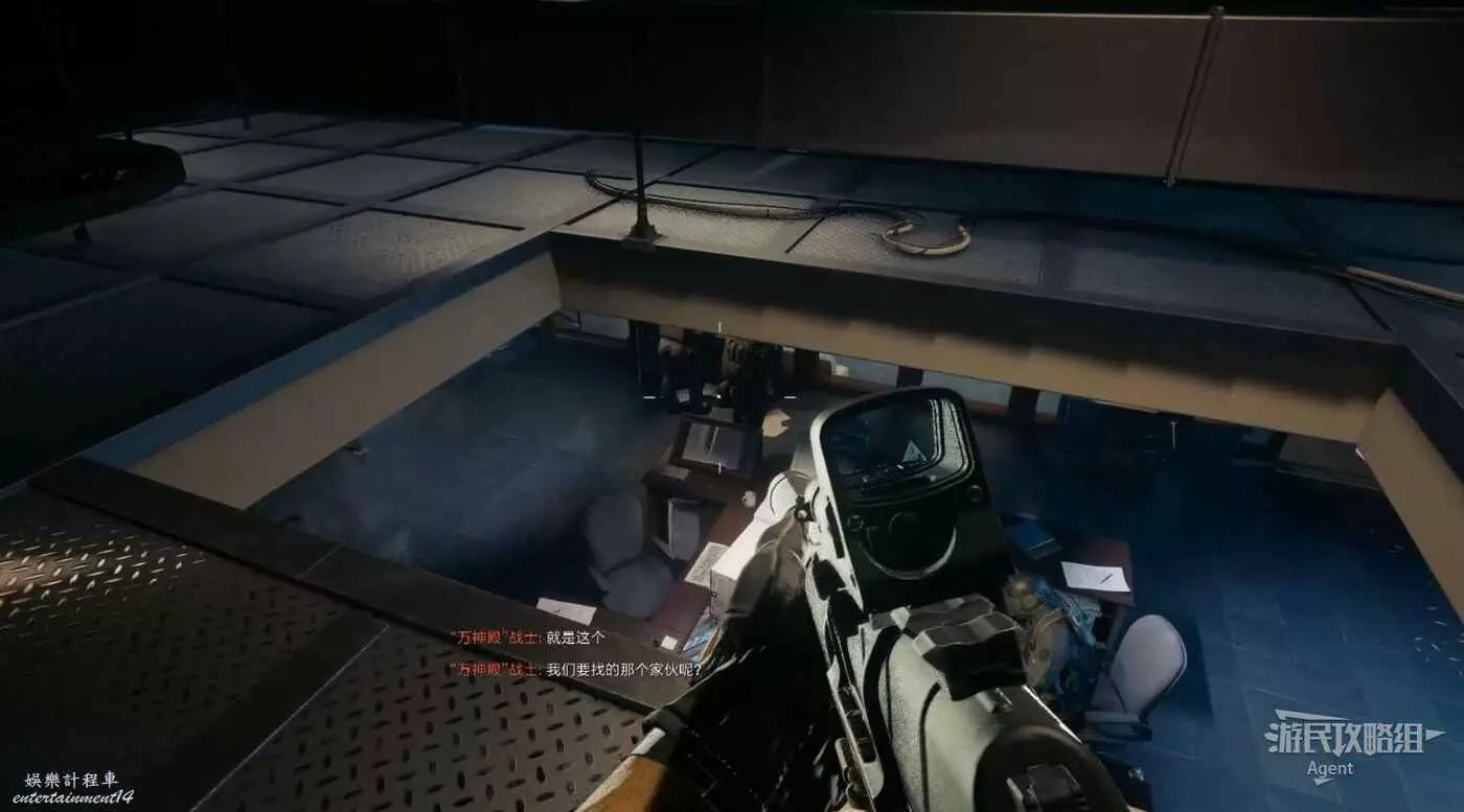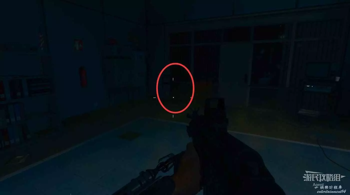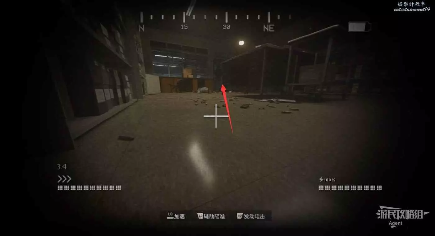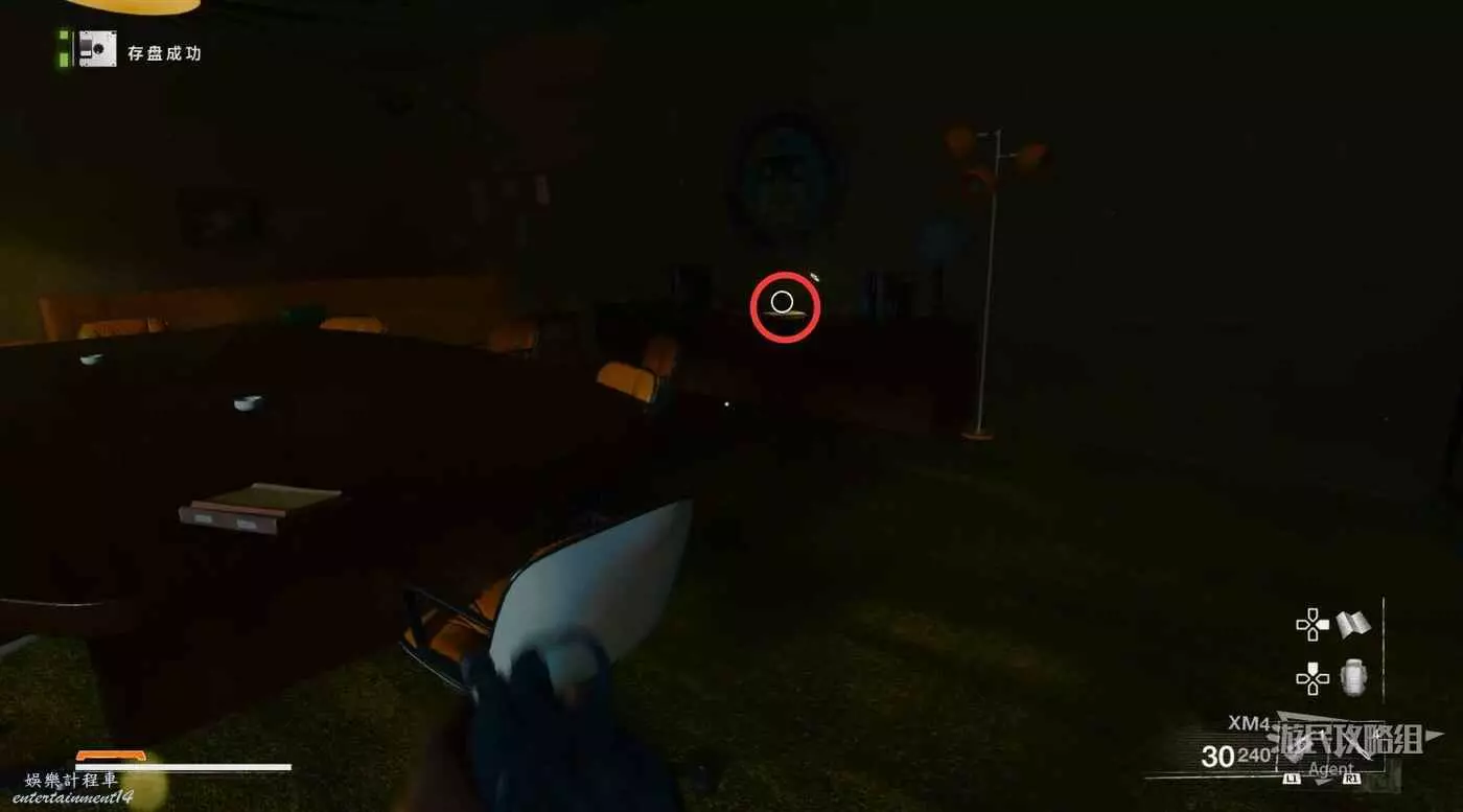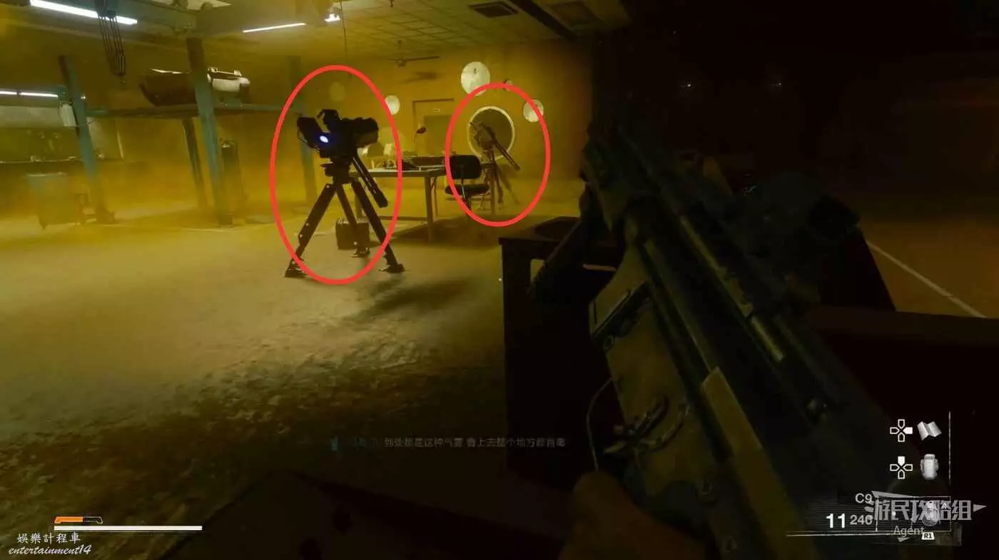 屋裡有很多敵人,躲到桌子底下,偷偷過去。如果中途被發現也不用慌,迅速沖過去炸掉配電器就行。