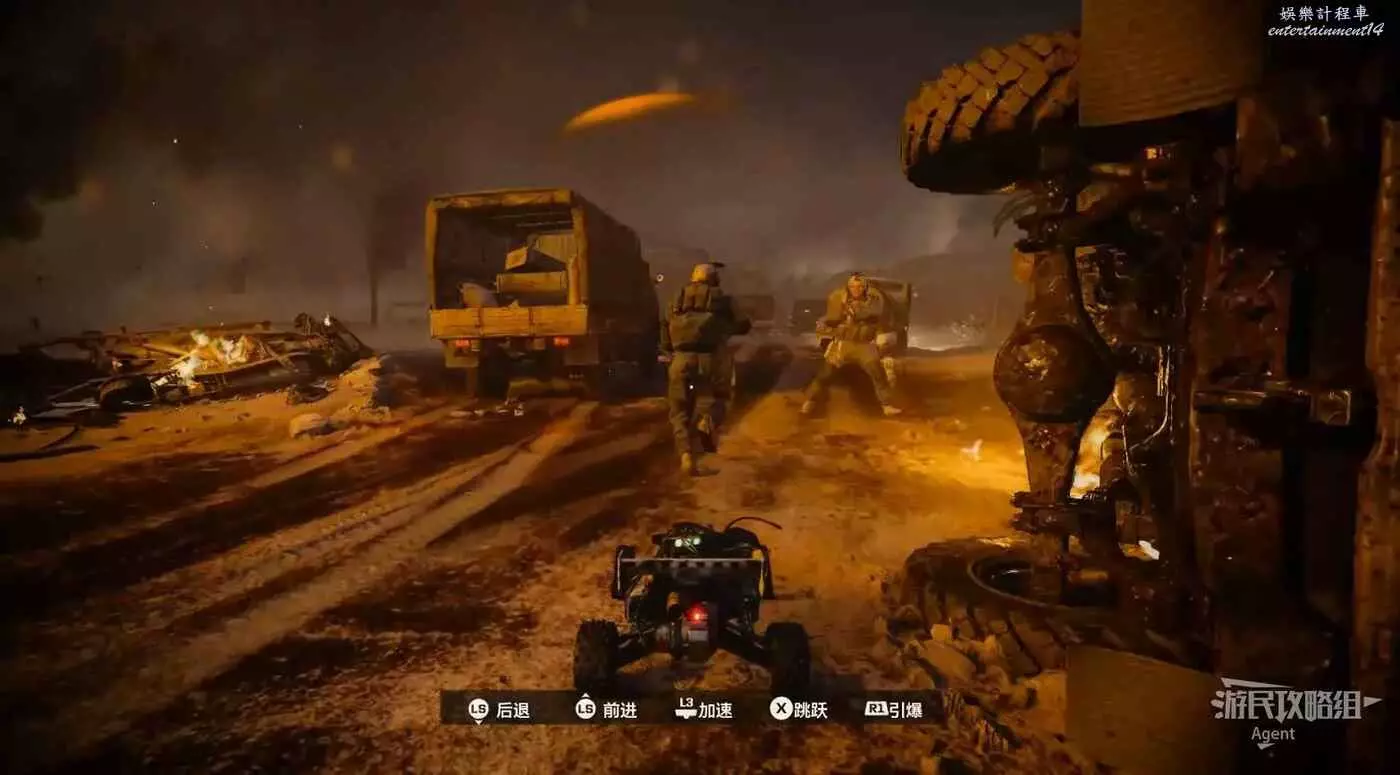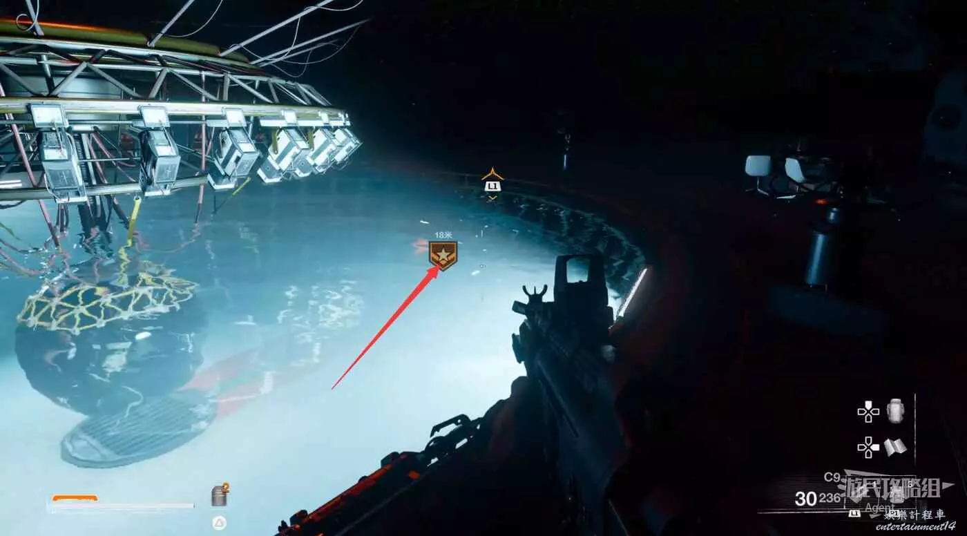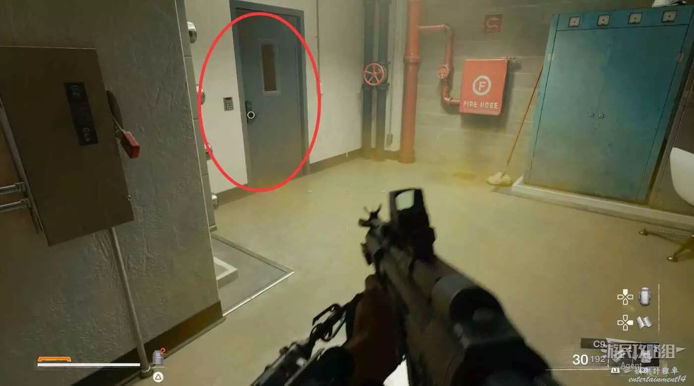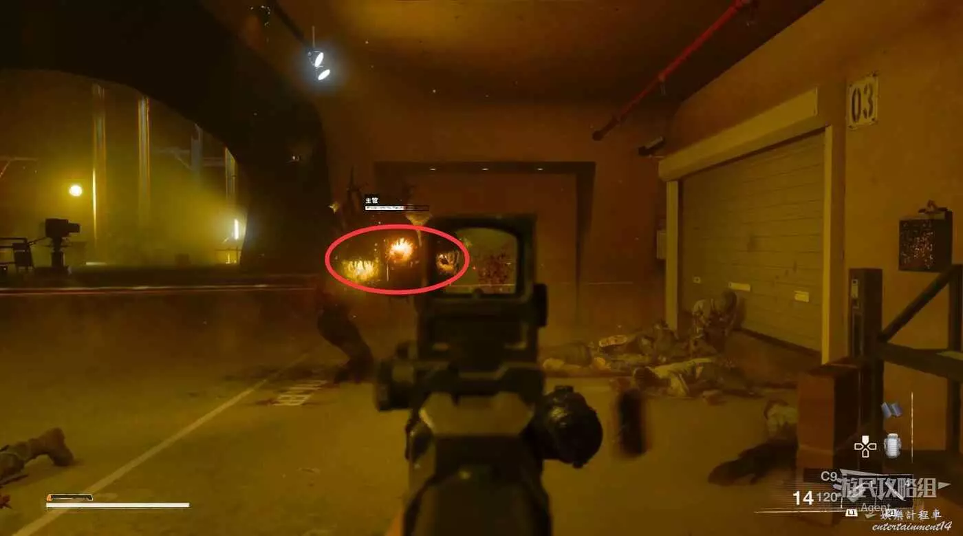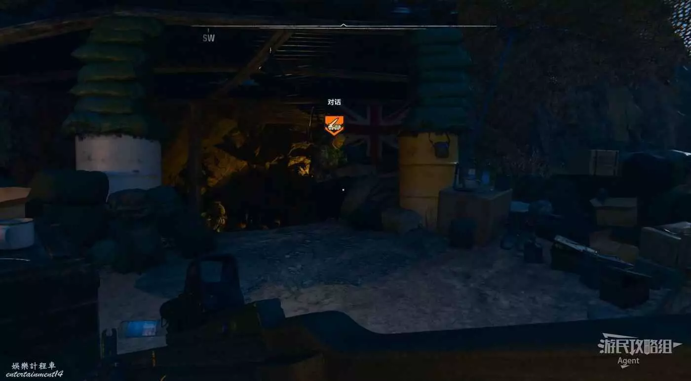 屋裡有很多敵人,躲到桌子底下,偷偷過去。如果中途被發現也不用慌,迅速沖過去炸掉配電器就行。