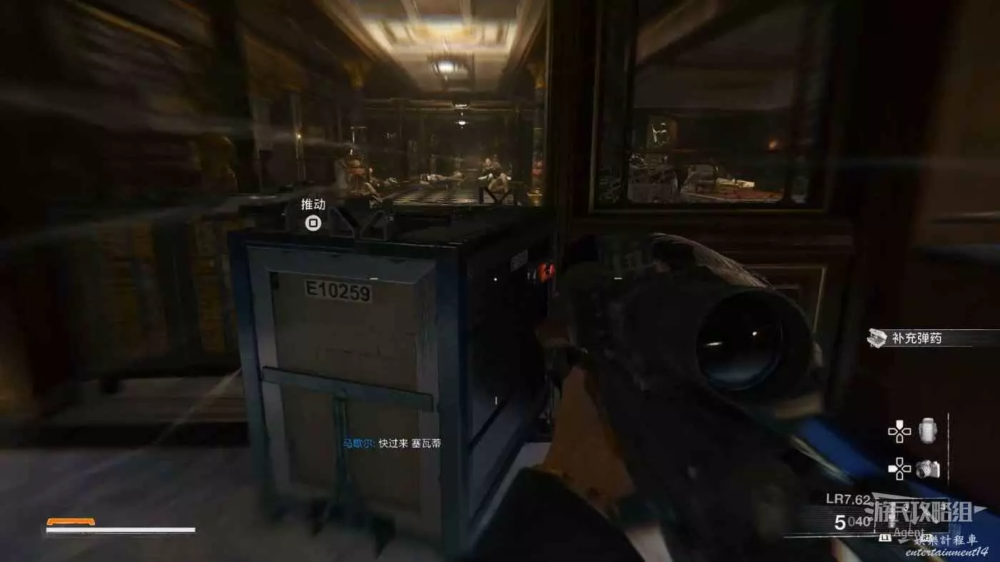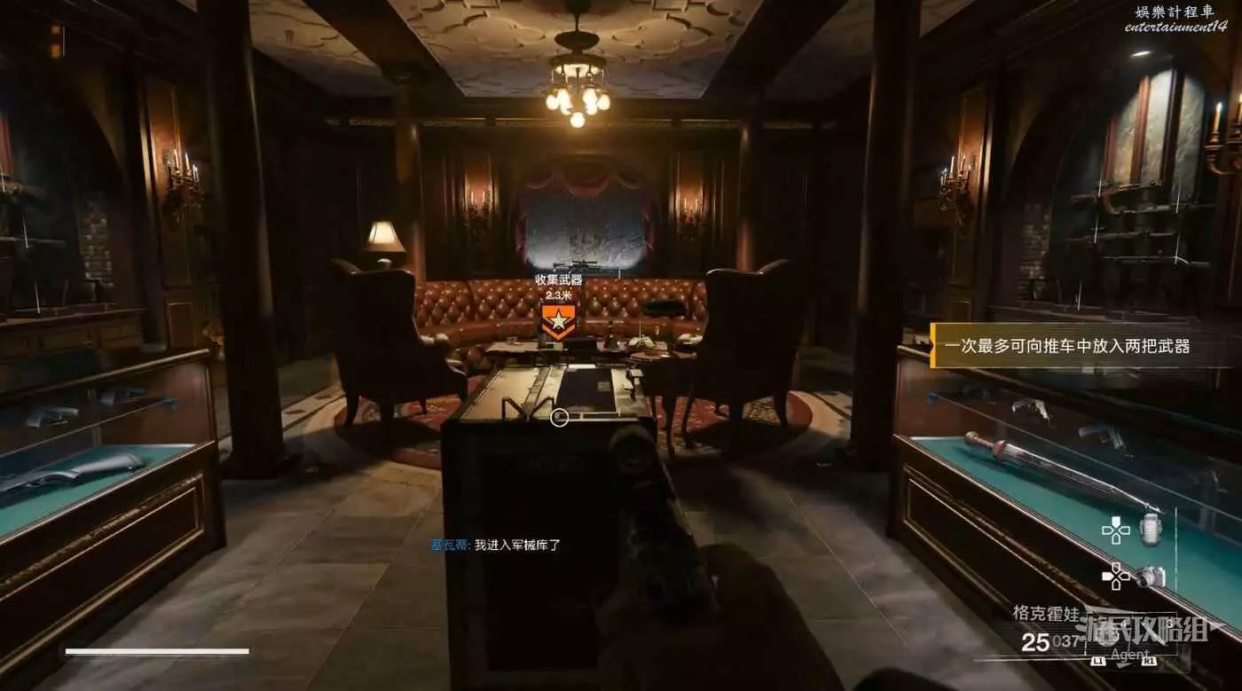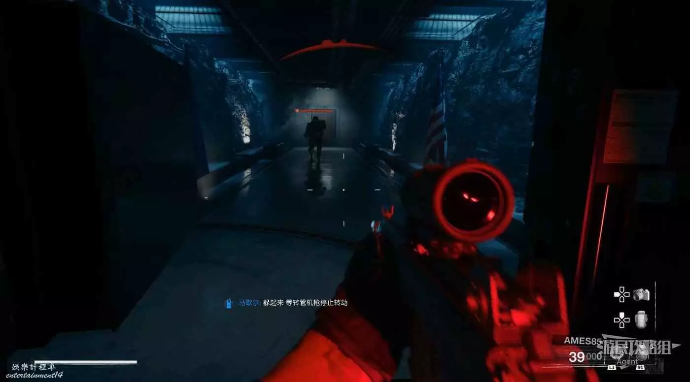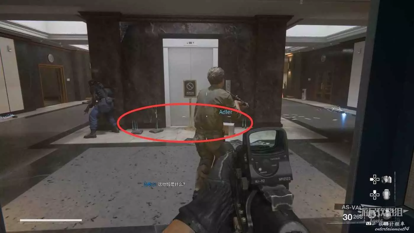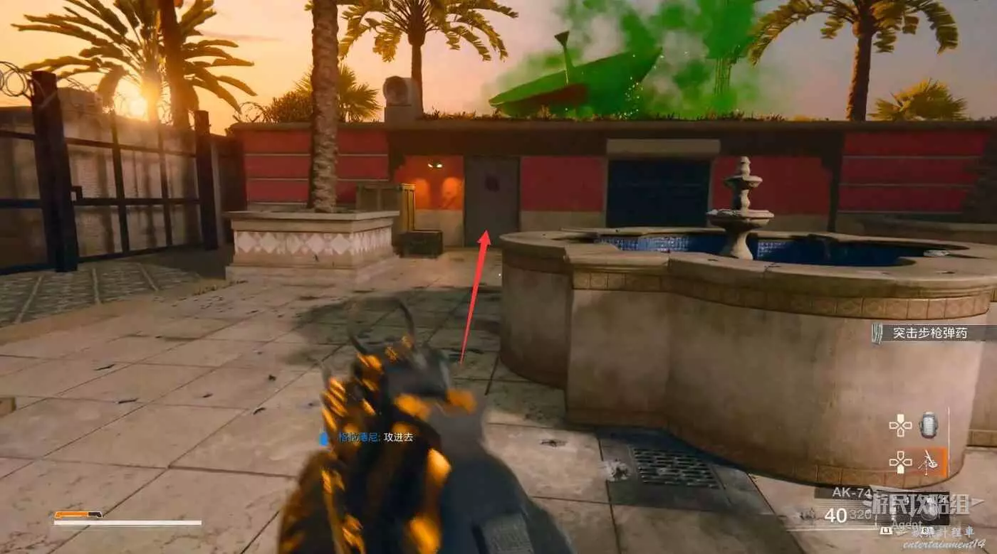屋裡有很多敵人,躲到桌子底下,偷偷過去。如果中途被發現也不用慌,迅速沖過去炸掉配電器就行。