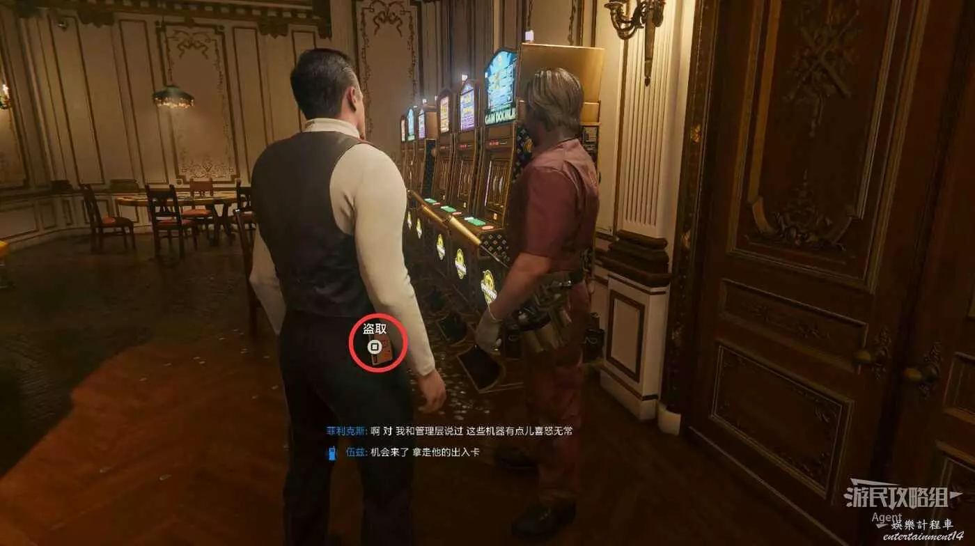 來到貴賓區,用老虎機製造干擾,乘機偷出入卡。