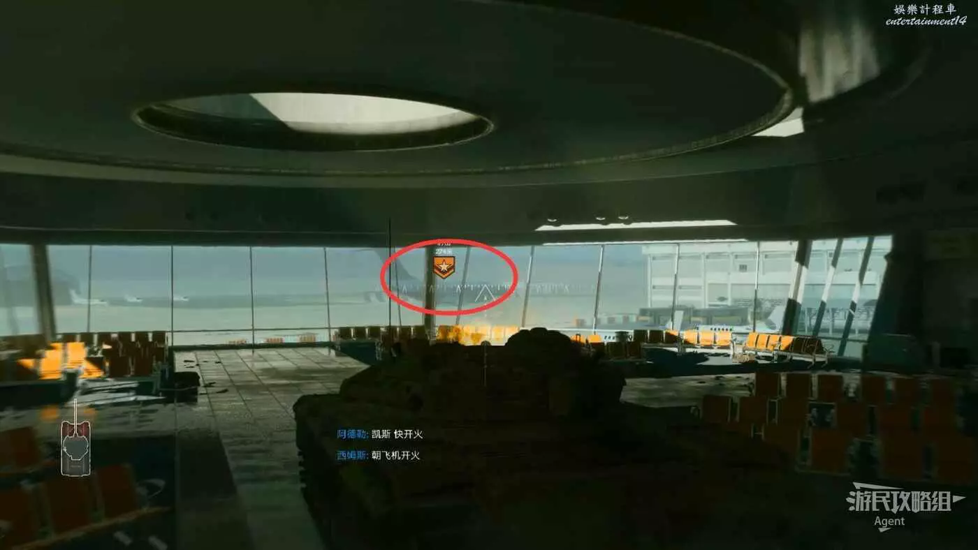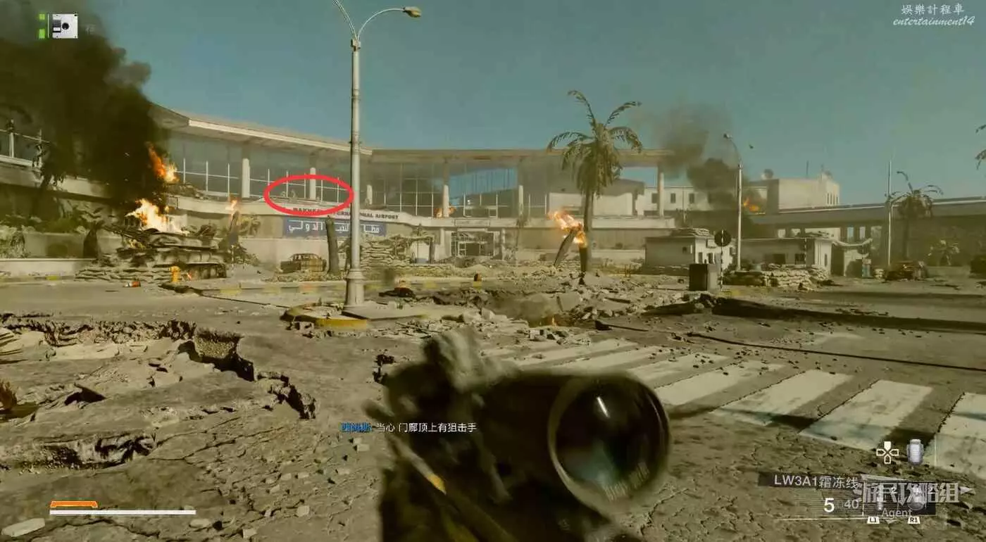 用狙擊槍解決樓上的敵人,然後進入機場航站樓。