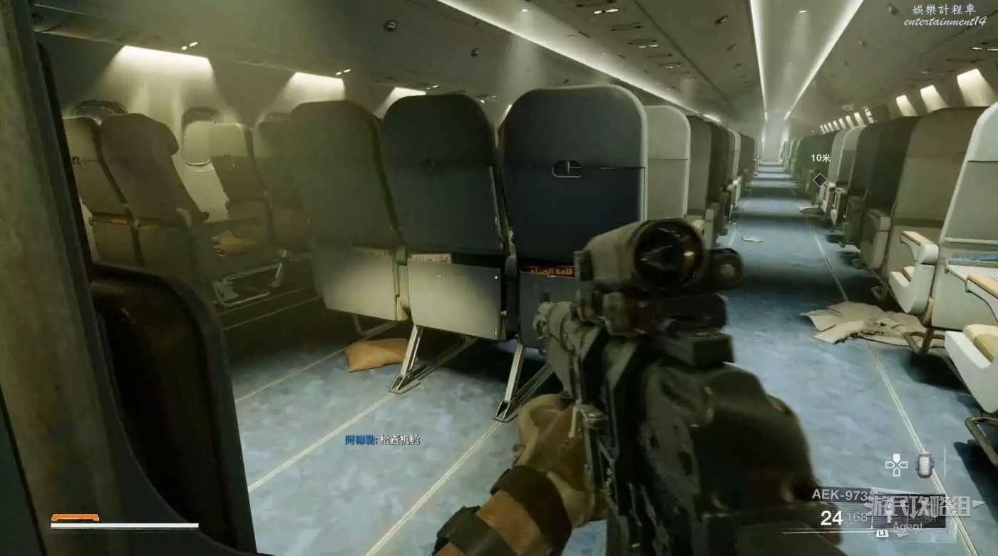 和隊友一起殺進來,上飛機後小心,座位後面躲著很多敵人,解決敵人後進入駕駛室。