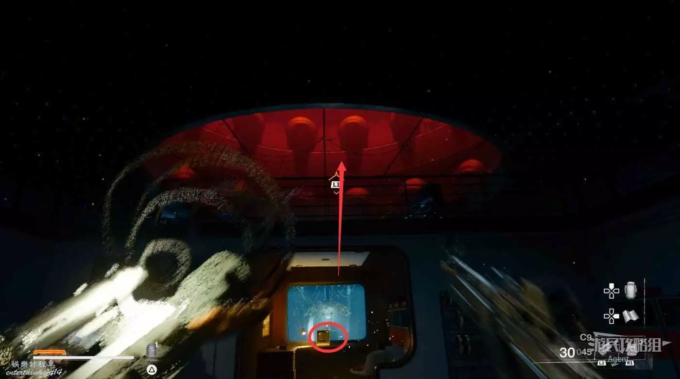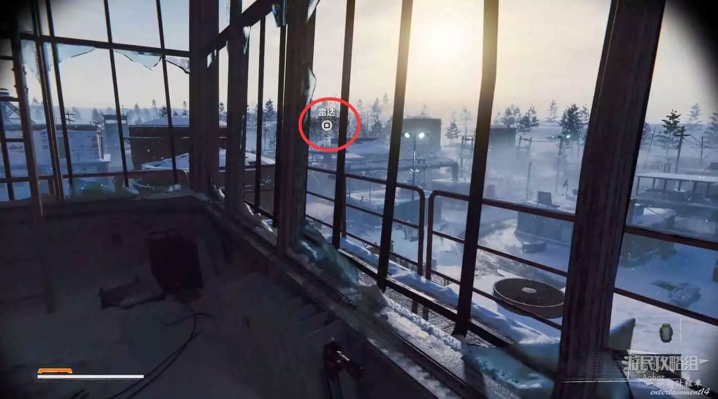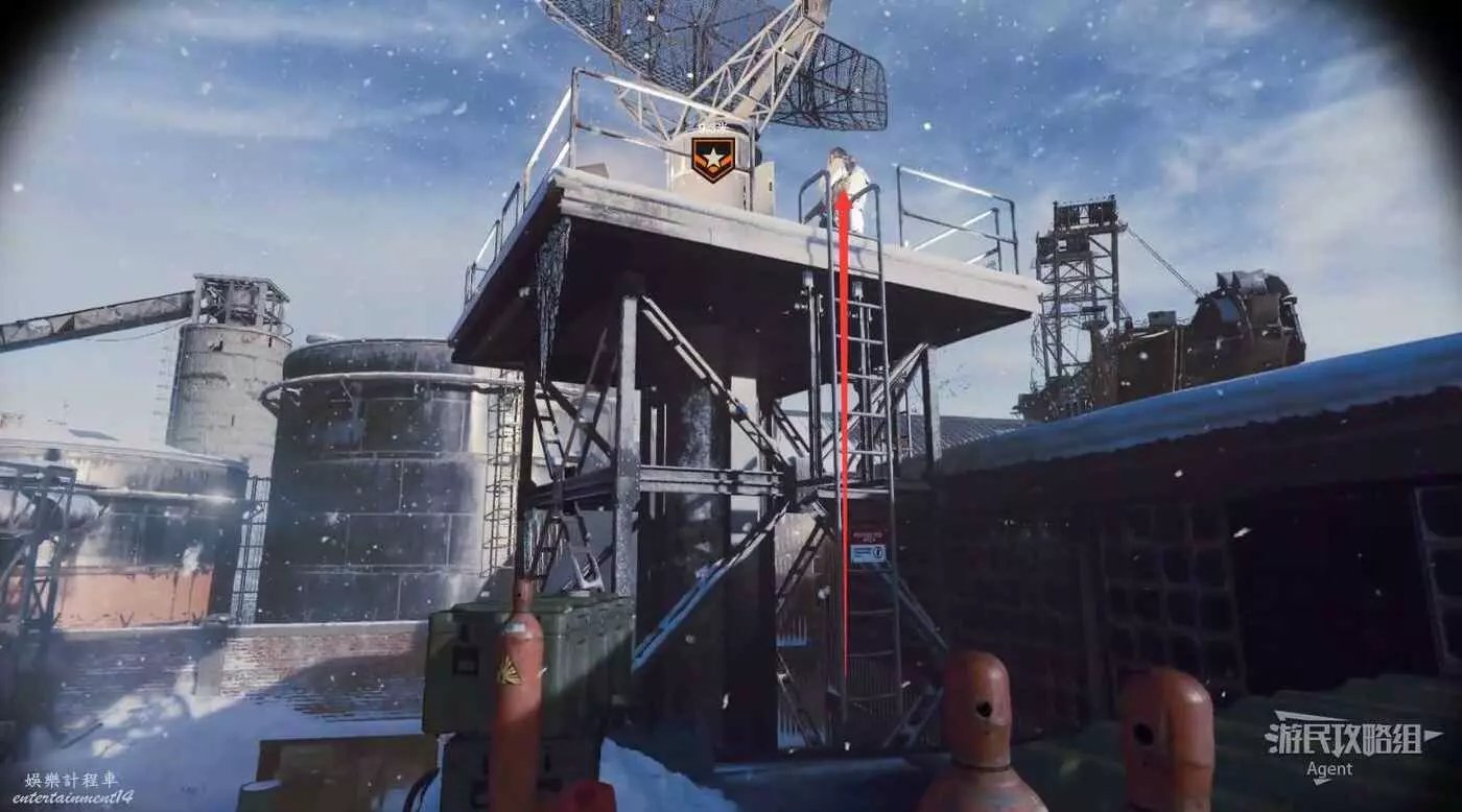來到雷達這邊,走樓梯上樓,直接爬梯子上去就可以給雷達安炸彈。