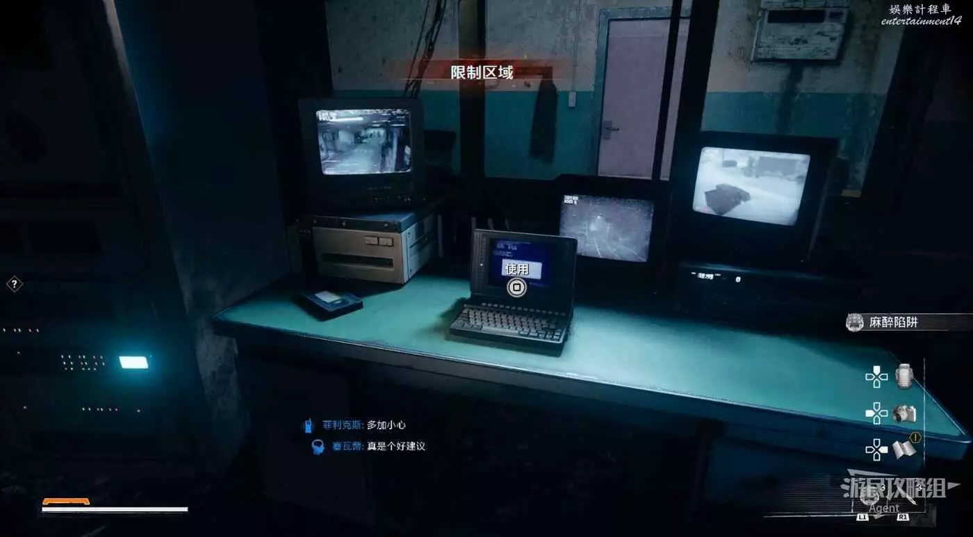 鑽過管道,從背後擊暈敵人,找到電腦改寫出入卡。