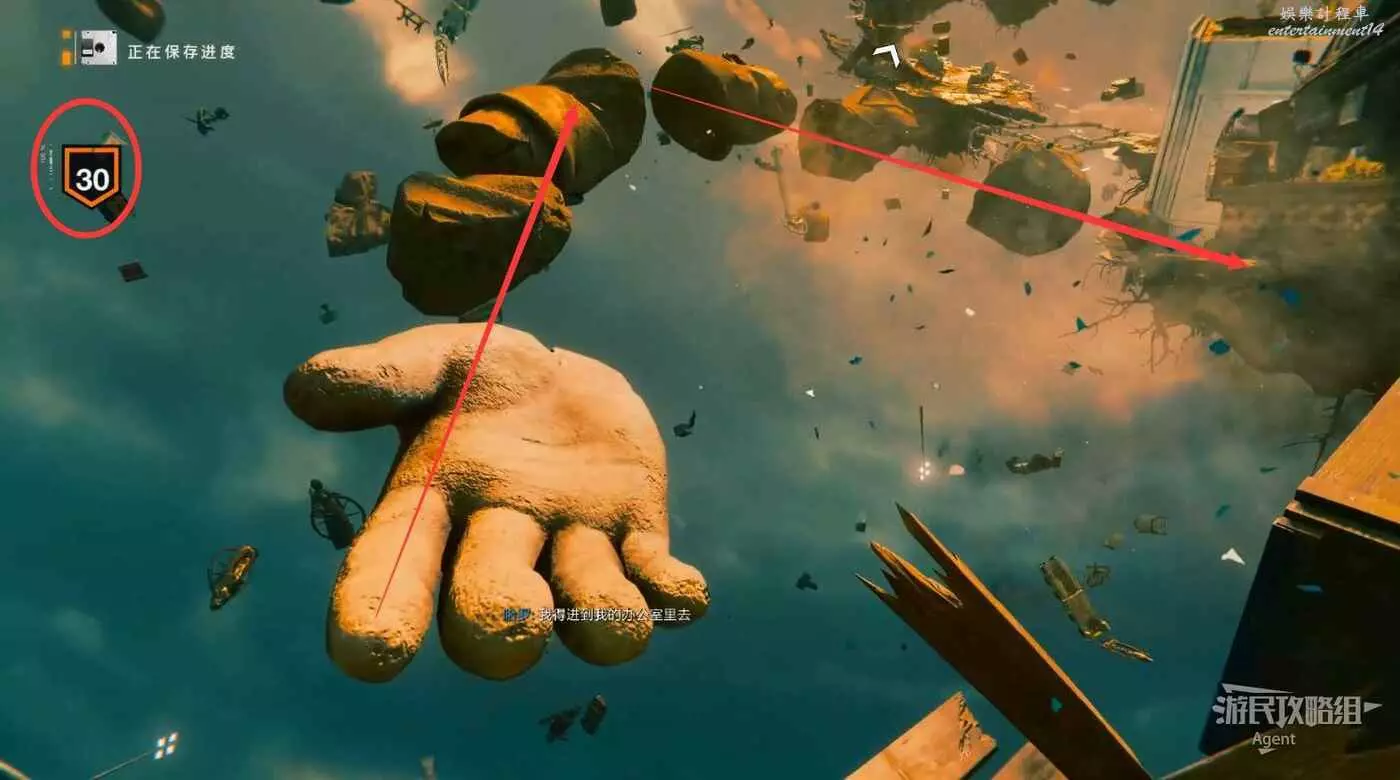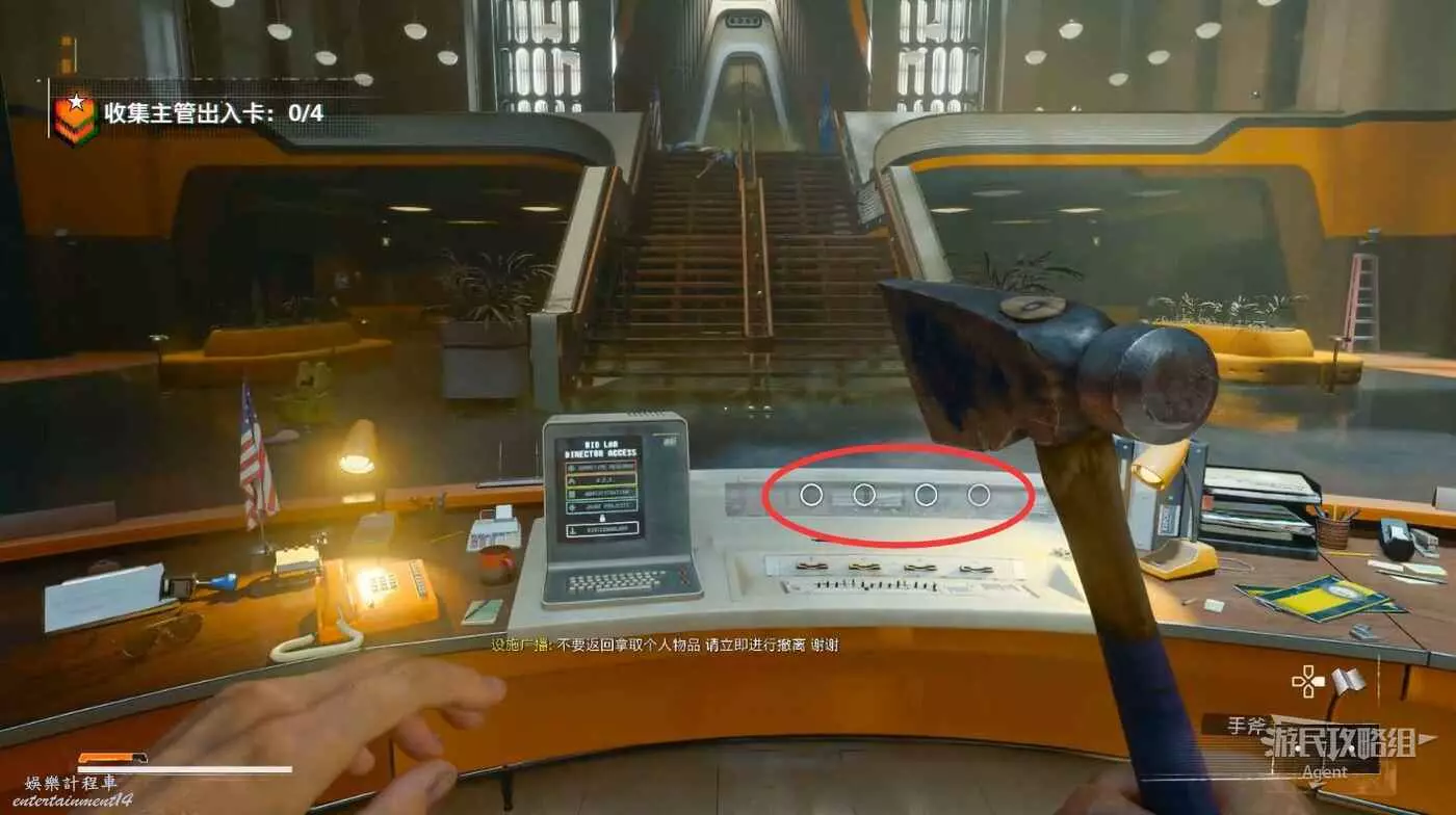 放入四個報告文件後,紅色主管會跑,一邊追一邊用抓鉤抓他。多抓幾次他就會變成怪物,擊敗怪物拿到主管出入卡。