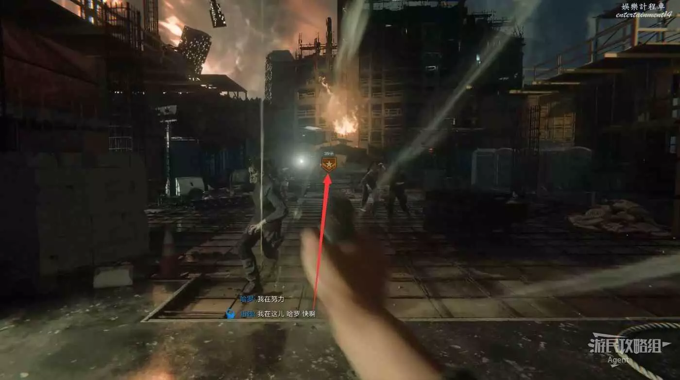 小心會有大量喪屍圍攻你,多用抓鉤逃跑,別停留在一個地方太久。擊敗怪物拿到主管出入卡。