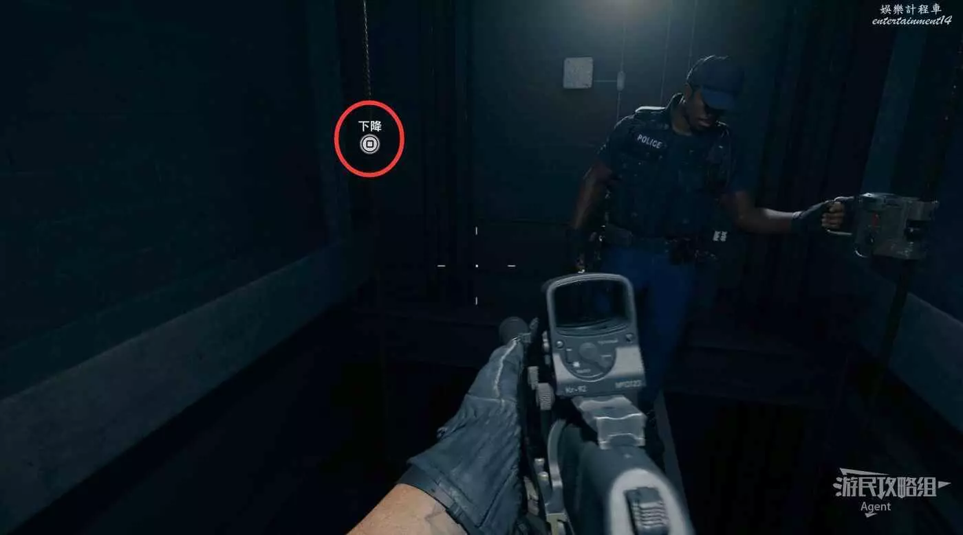 有個血很厚的重裝機槍兵守著電梯,機槍轉動時趕緊躲起來,等機槍停止轉動時再出來幹他。